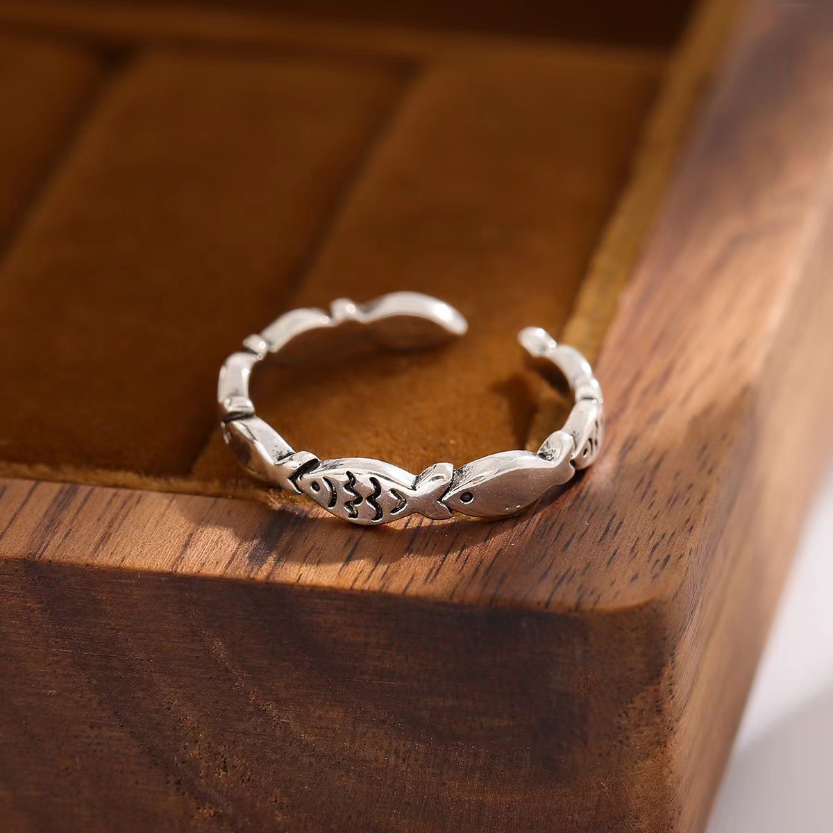 Retro style simple fish ring for men and women same style Thai silver elegant all-match open adjustable creative index finger ring