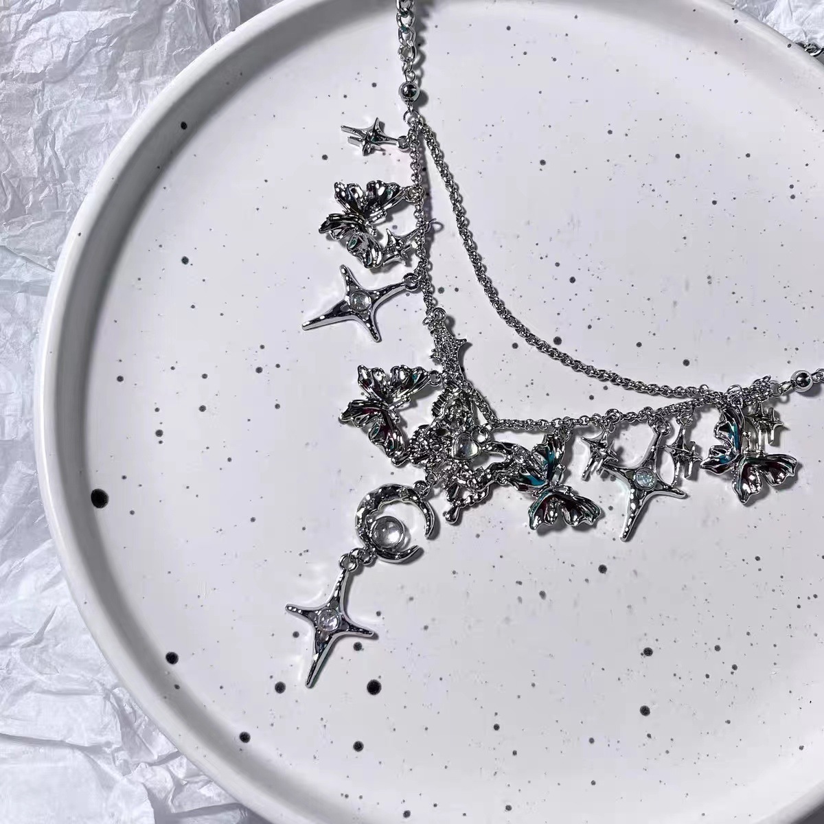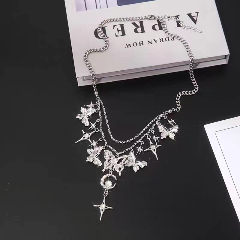 Color: Butterfly star and moon tassel necklace x3627