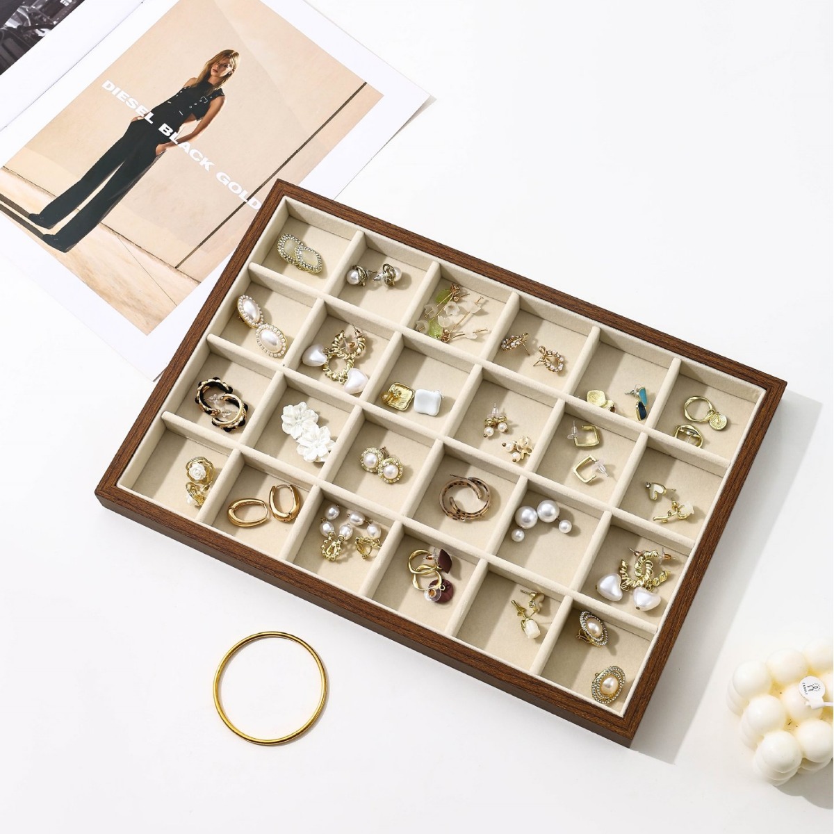 Black Walnut Pattern Jewelry Tray, Jewelry Display Tray, Storage Tray for Earrings, Necklaces, Empty Tray for Bracelets, Cross-Border Hot Seller