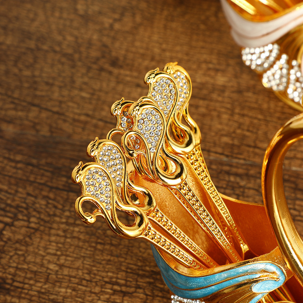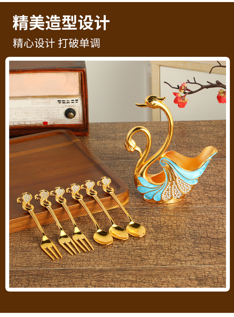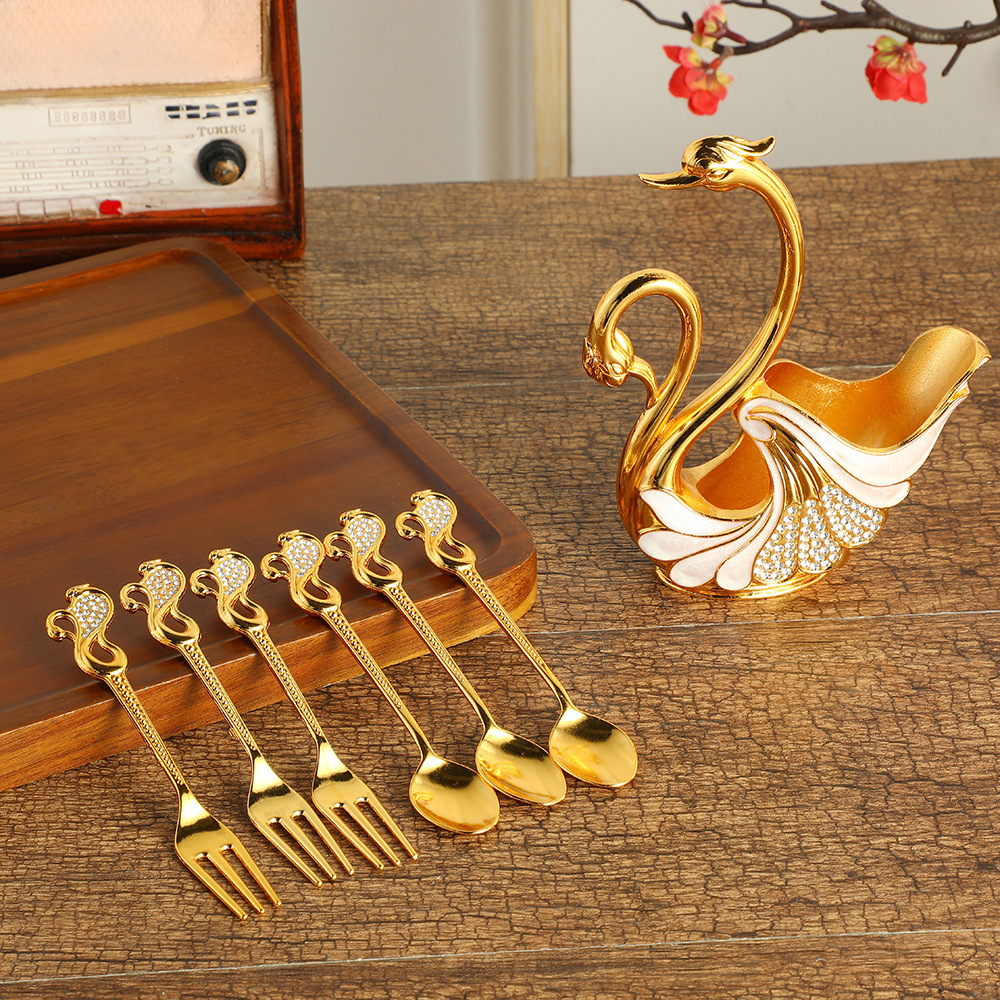 Golden Edge Diamond Swan fruit fork cute dessert spoon suit tableware household kitchen spoon supplies wholesale