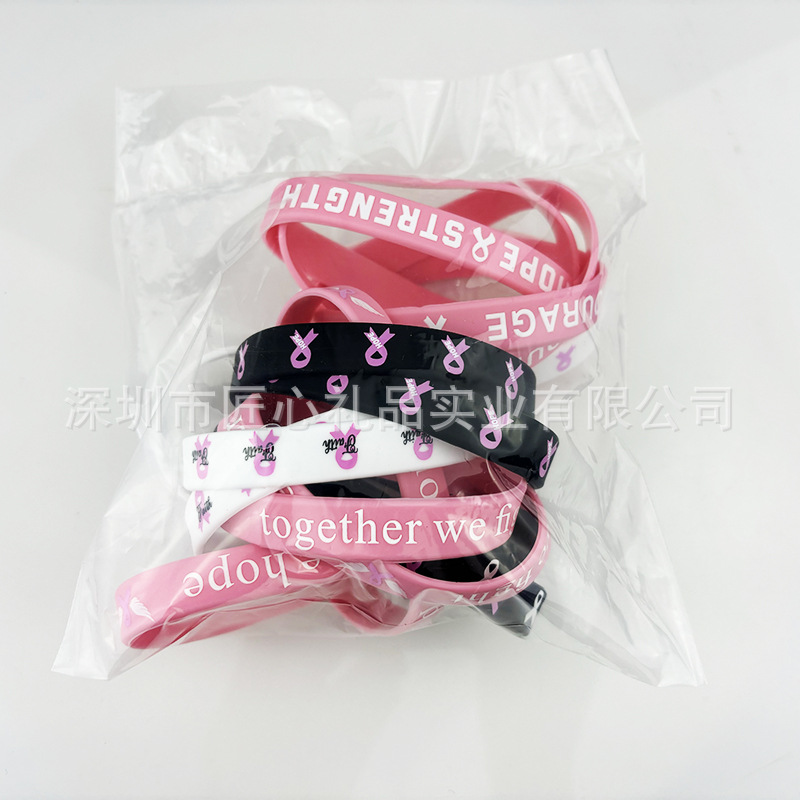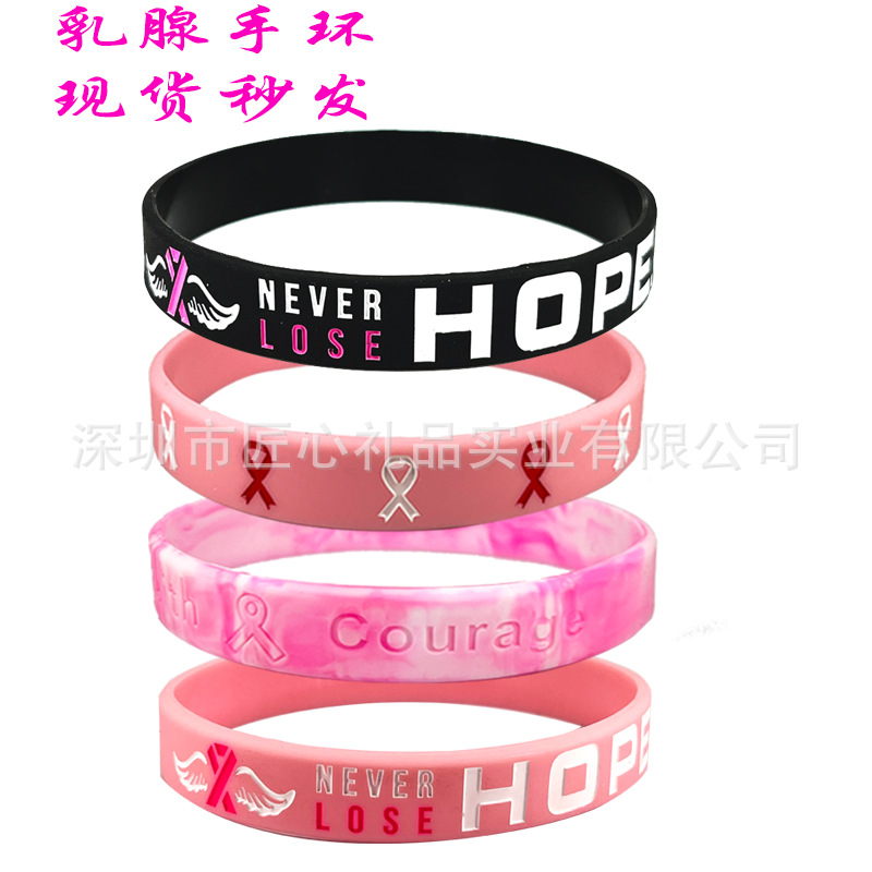 Alias: Breast silicone bracelet in stock hope faith strength care women's breast consciousness silicone ornament pink ribbon bracelet
