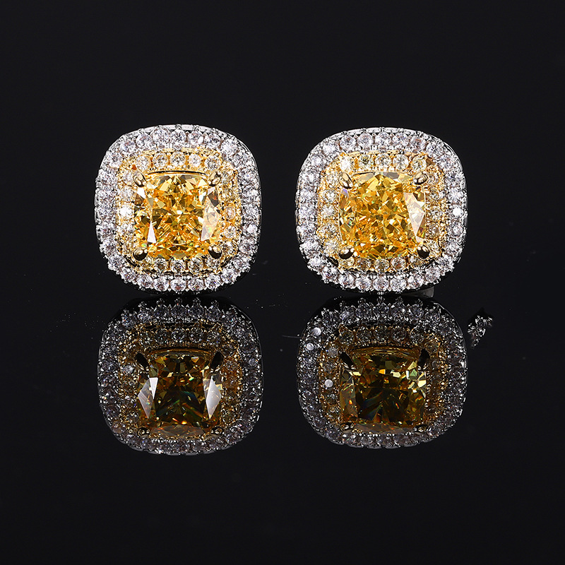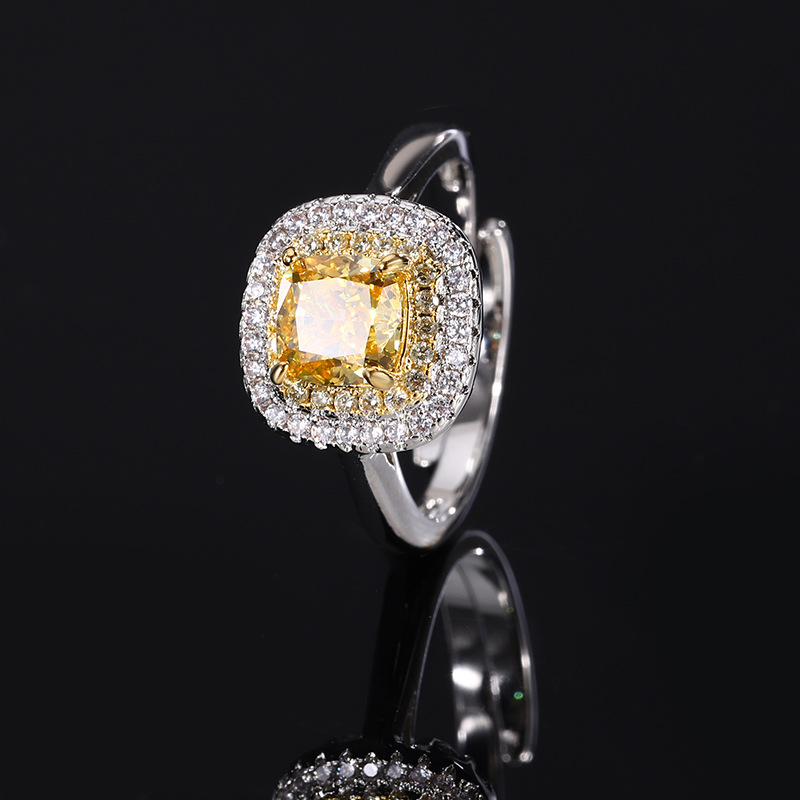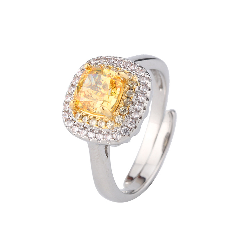 Autumn and winter new Zhuangshang jewelry set high carbon drill ice flower cut copper inlay yellow diamond set main stone 6*6