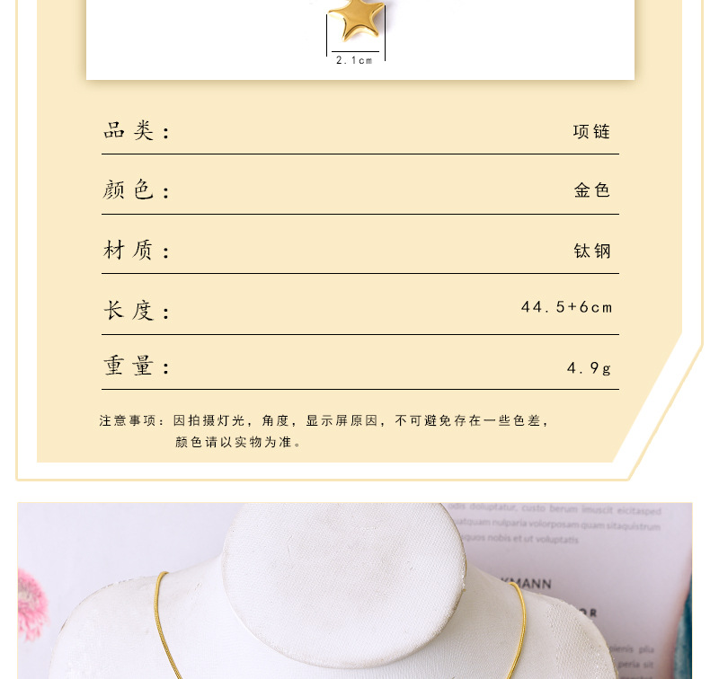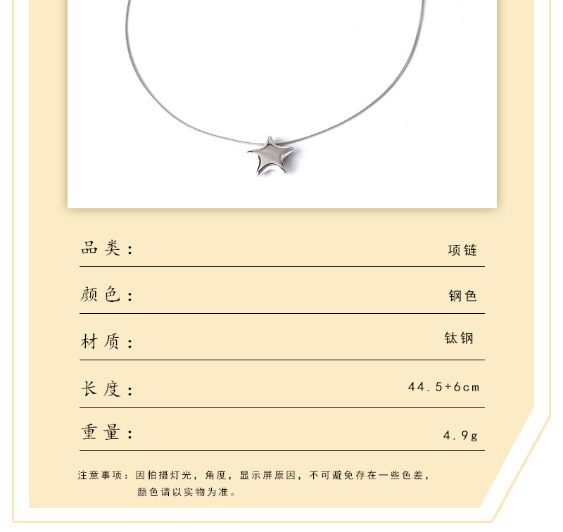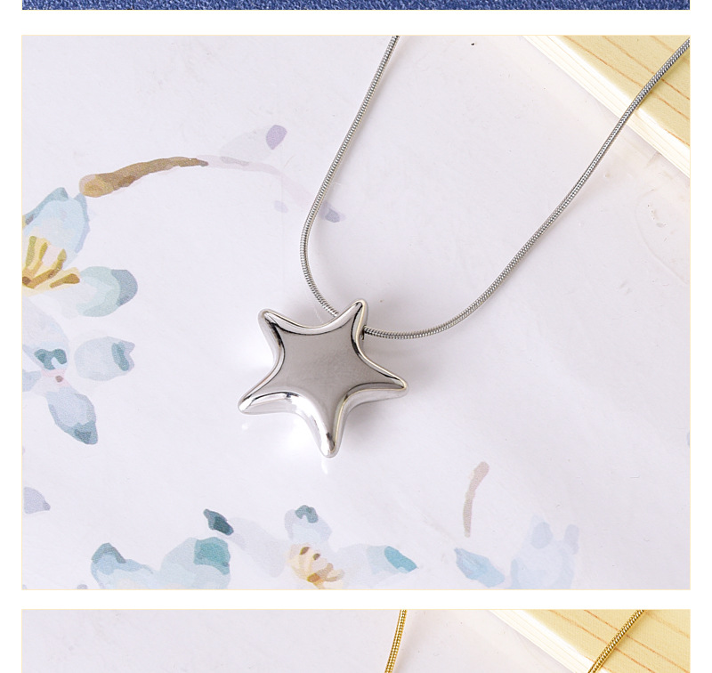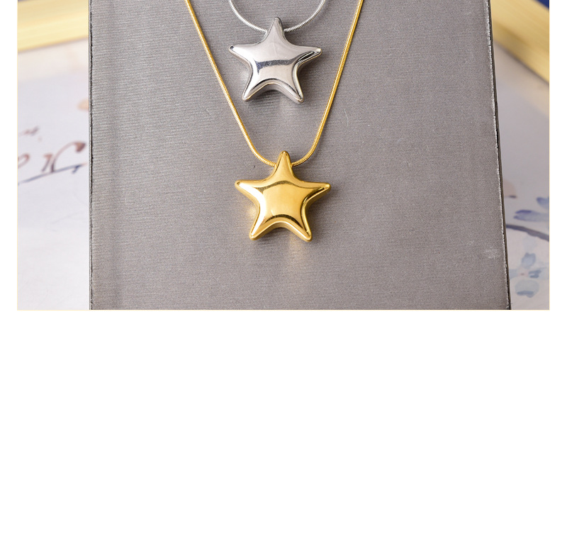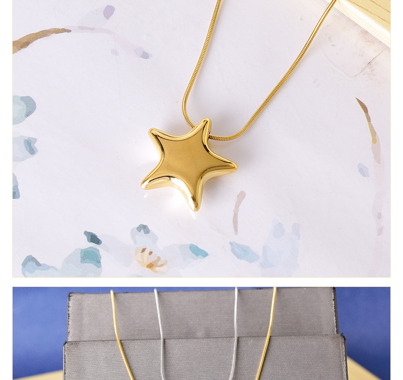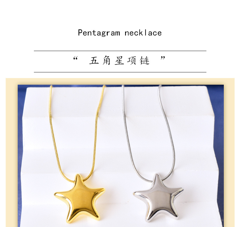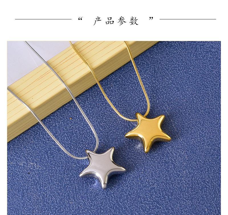 Simple All-match Gloss Five-pointed Star Clavicle Chain Titanium Steel Water-soaked Steel Color Gold Necklace Internet Celebrant Same Style