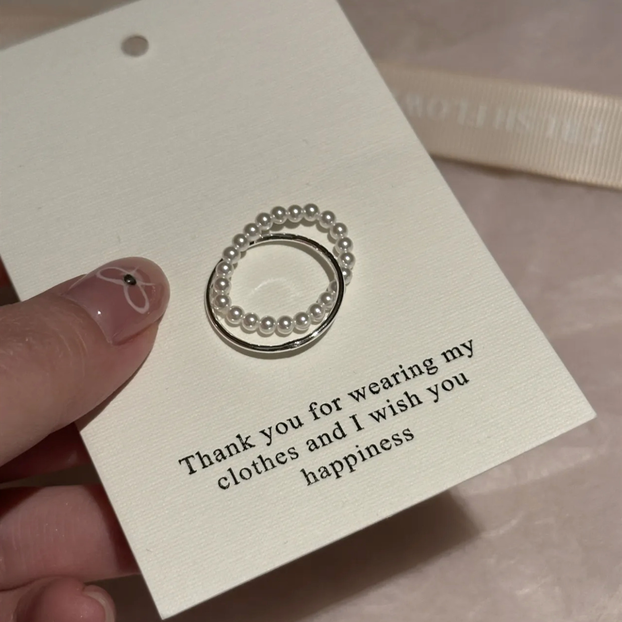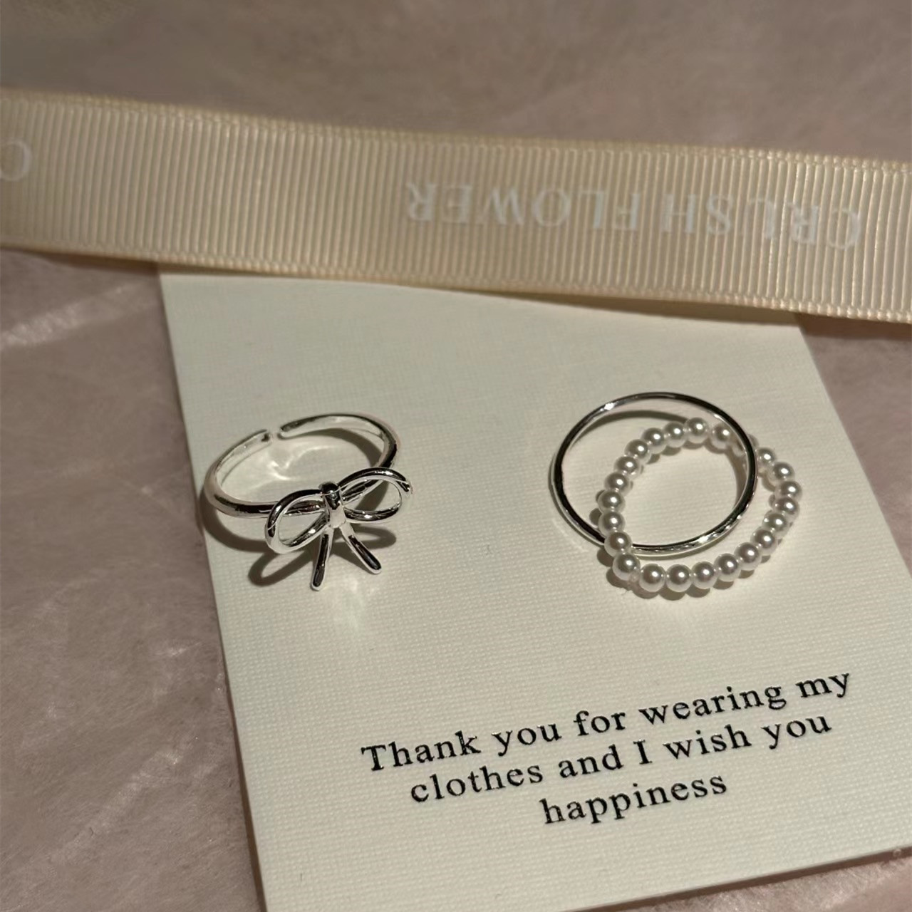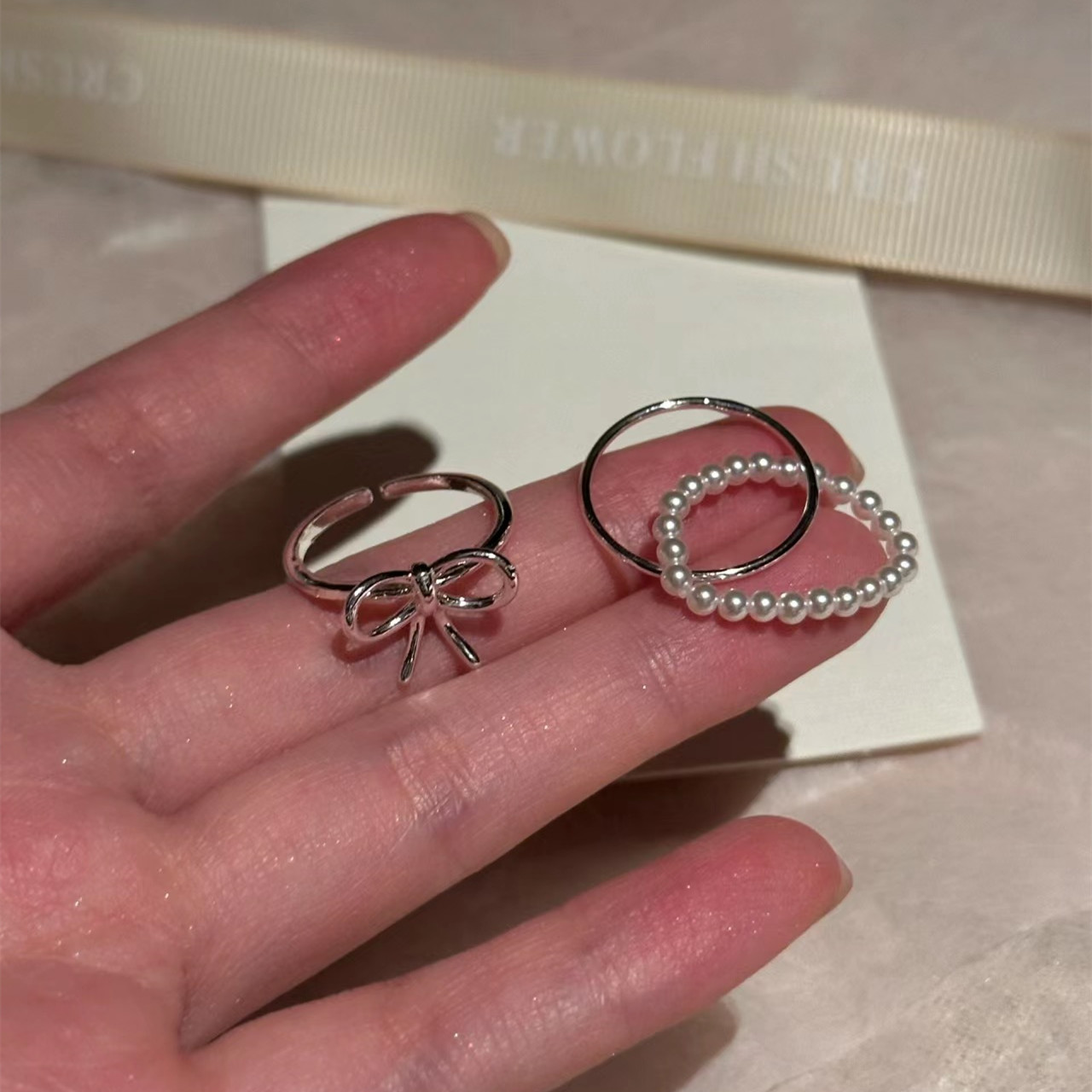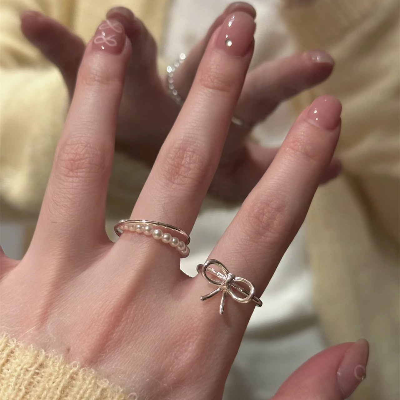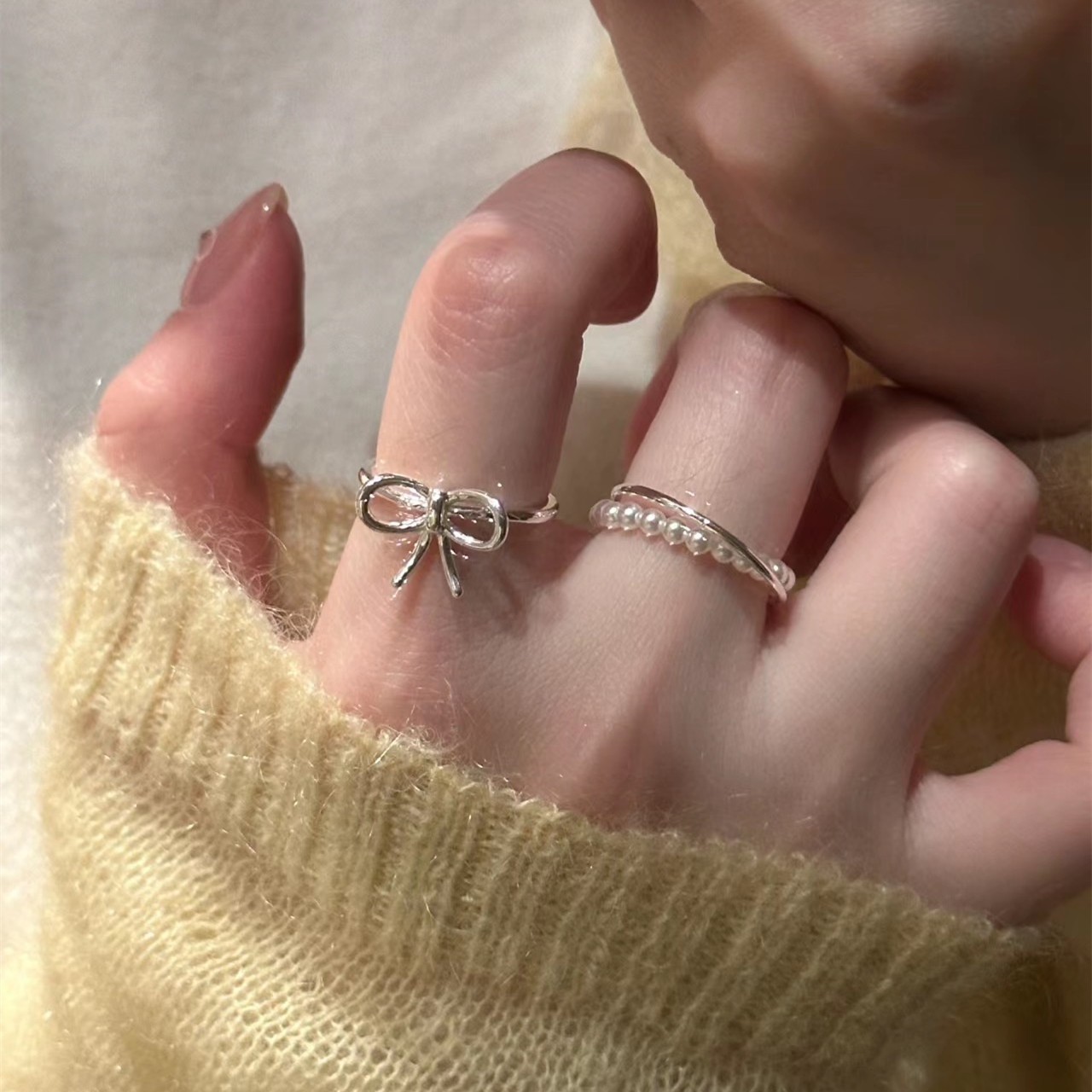 Korean Pearl Bow Double Layer Elastic Cross Ring Women's New Explosive Light Luxury Finger Ring High-grade Finger Ring