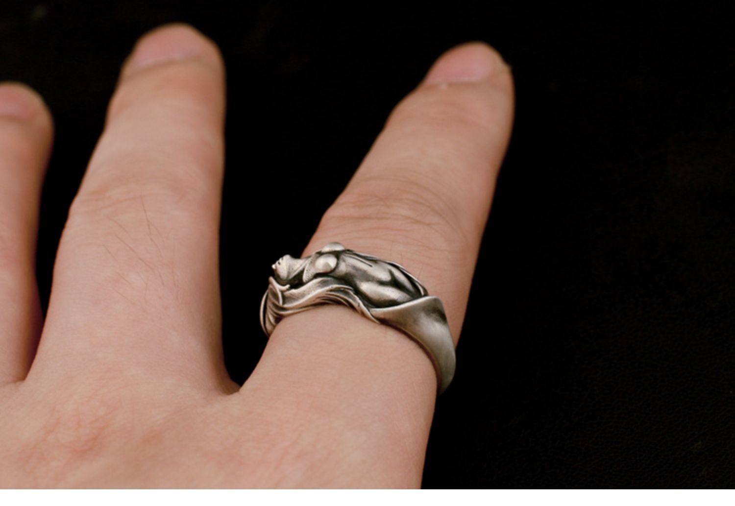 Chiba men and women born Thai silver ring naked women silver temperament European and American niche design tide cool open mouth index finger ring