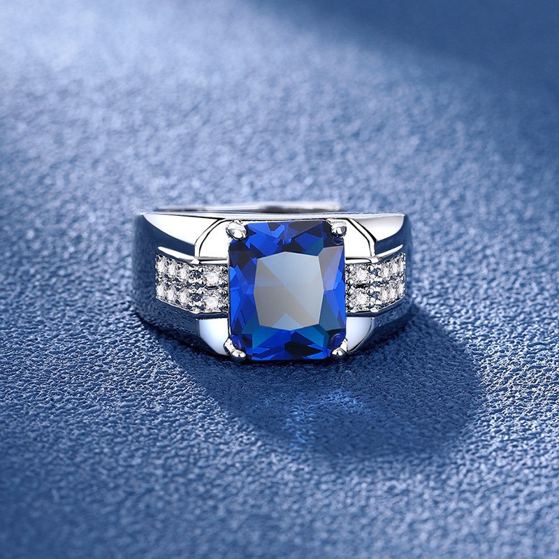 Color: Sapphire men's ring [copper plated with white gold] ljz-12