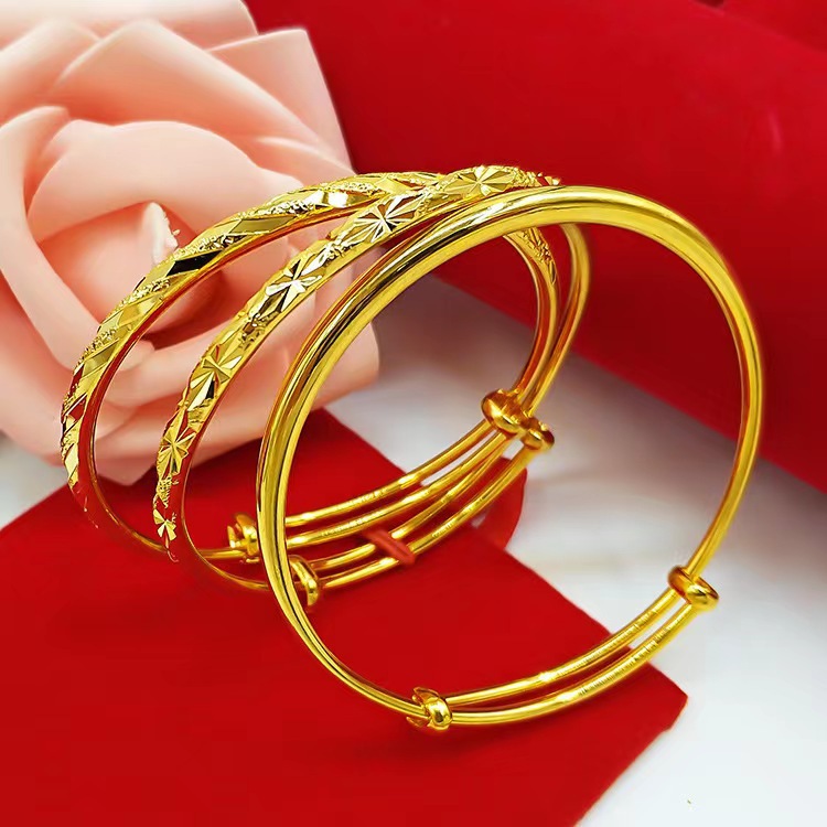 Bronze gold-plated round stick push-pull bracelet meteor shower glosy starry ethnic style bracelet for women live sand gold explosions