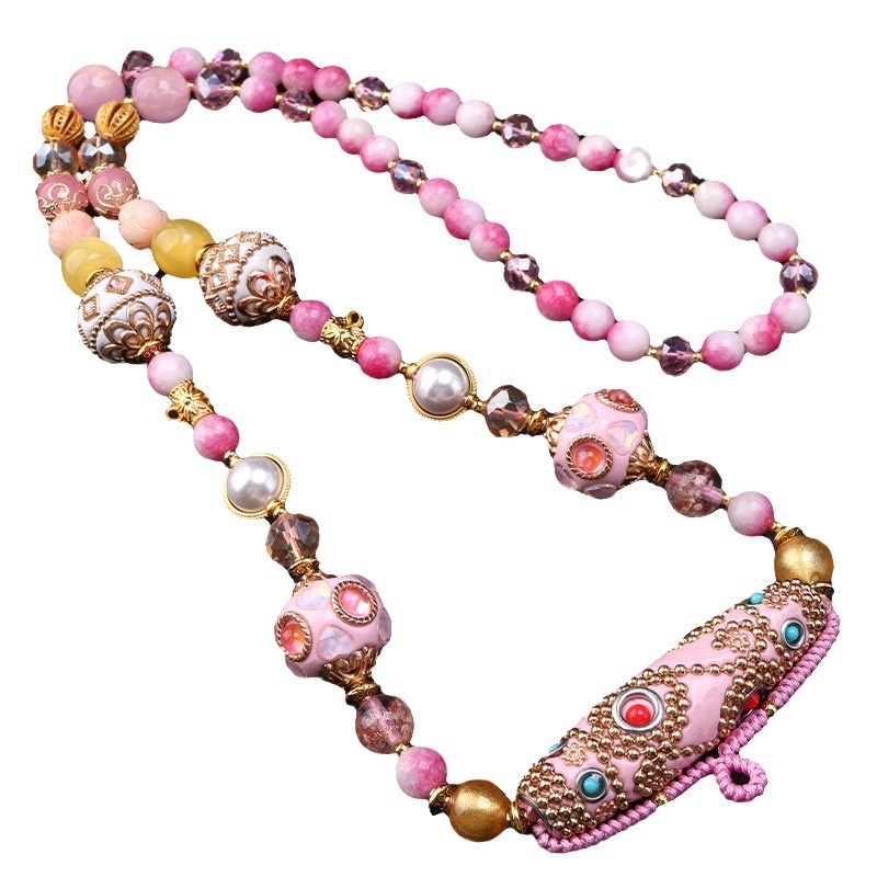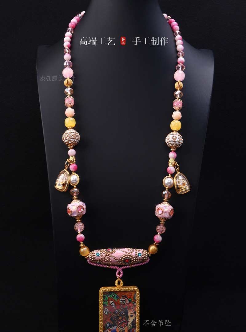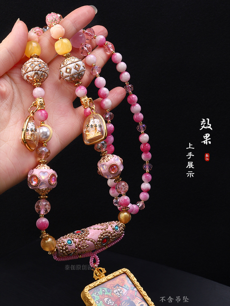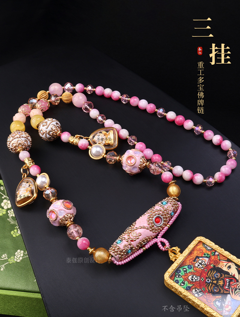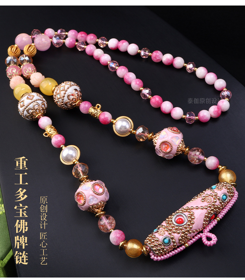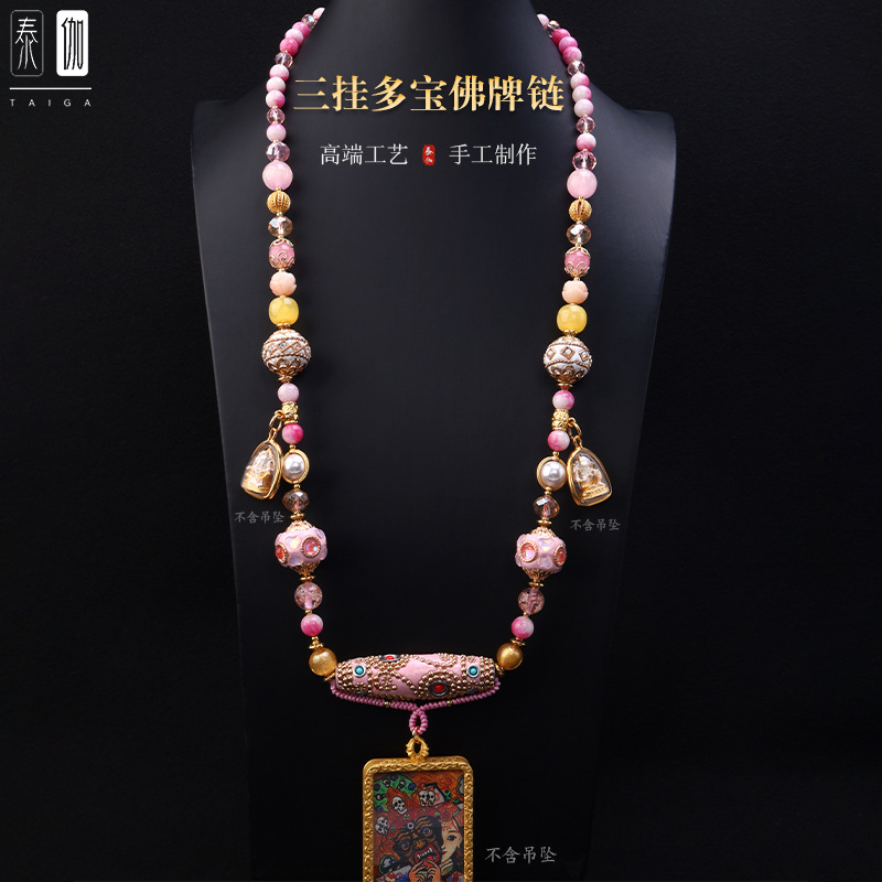 Thailand Three-Hanging Dobo Buddha Brand Chain Bohemian Pink Dobo Element Internet Celebrity Same Style Heavy Handmade Pendant Rope Chain