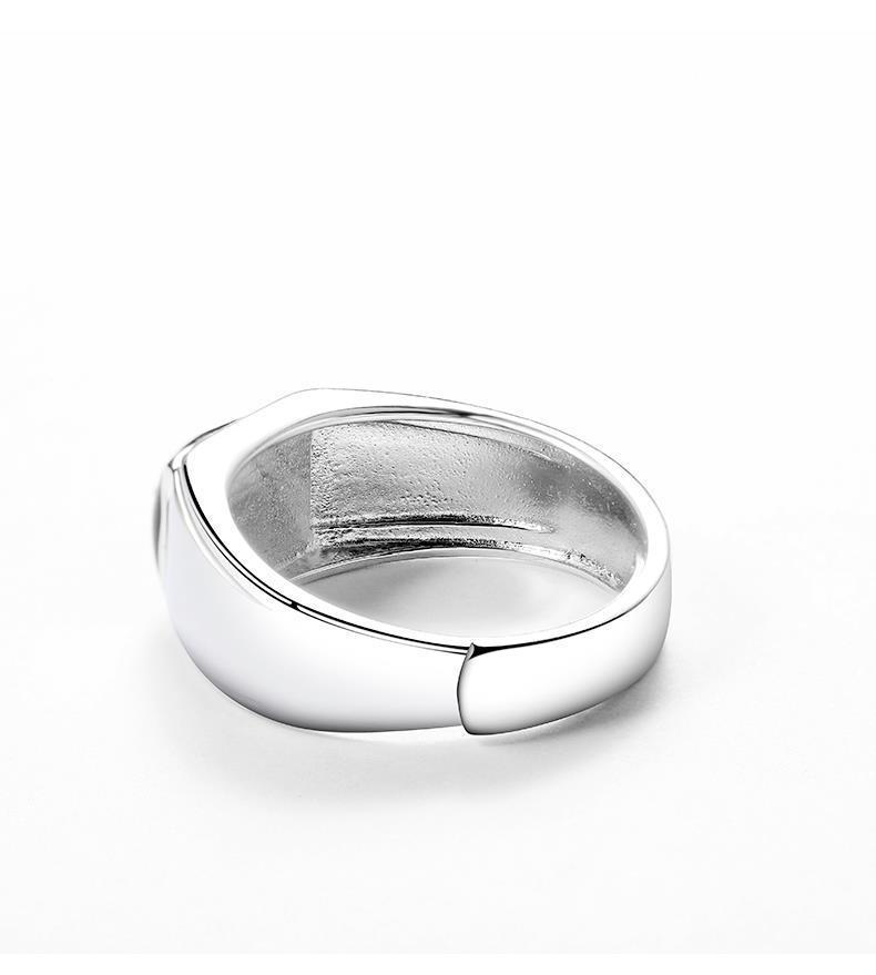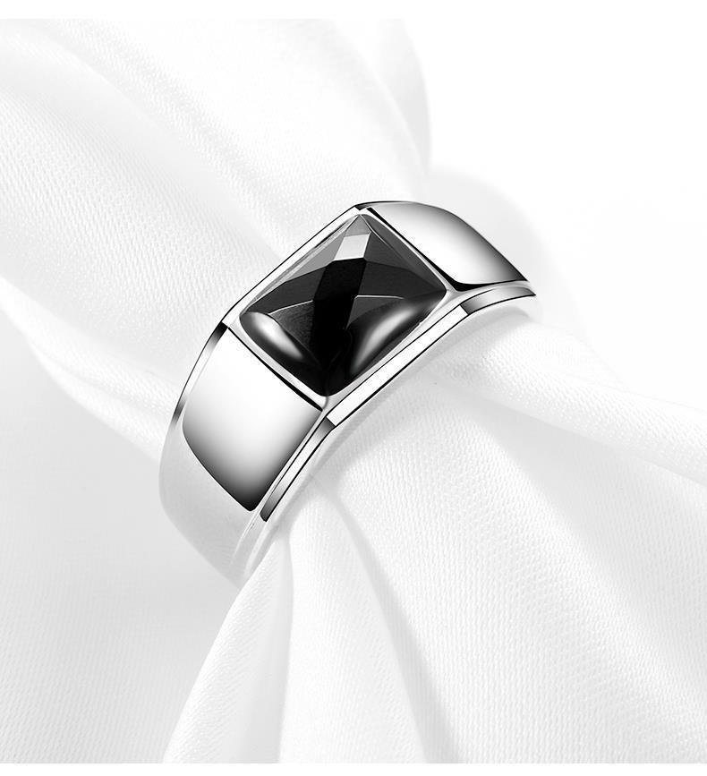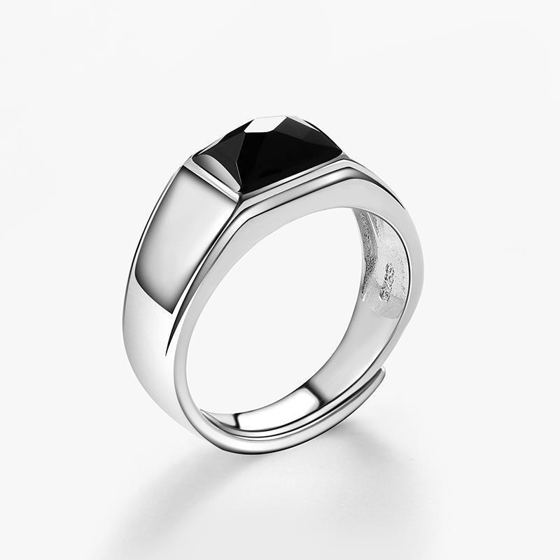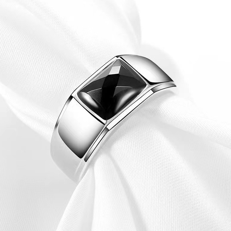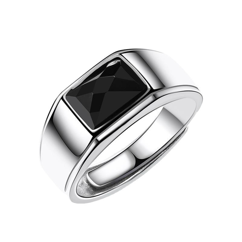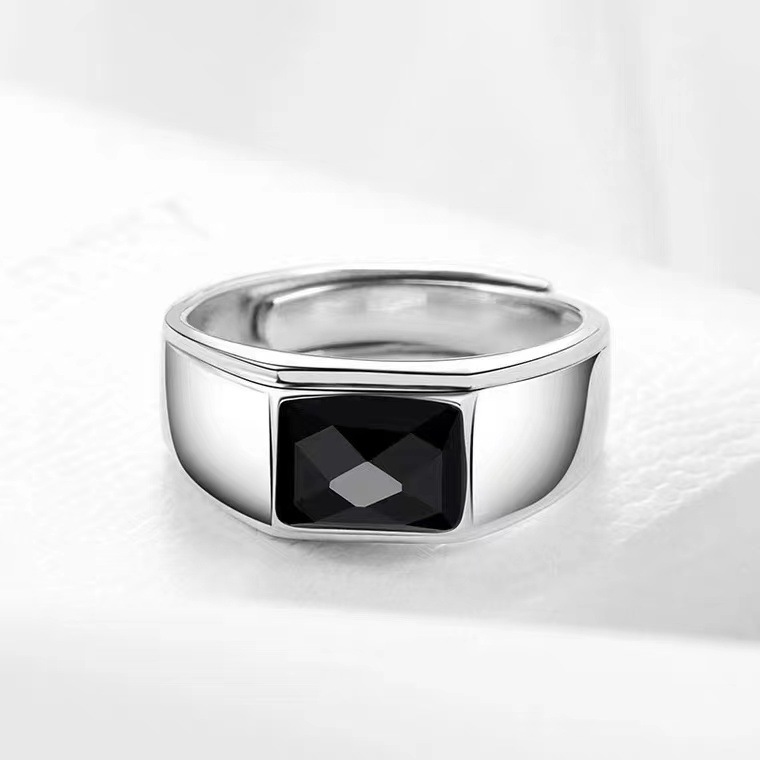 S925 Silver Plated Soft Light Black Onyx Ring Men's Personality Fashionable Trendy Business Opening Adjustable Wide Face Single Ring