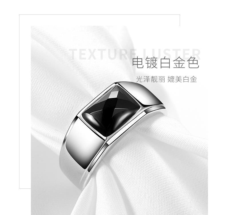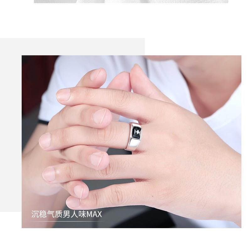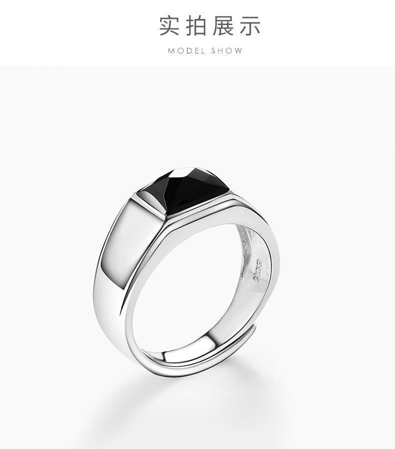柔光黑玛瑙戒指男个性时尚潮人商务开口可调节宽面单戒