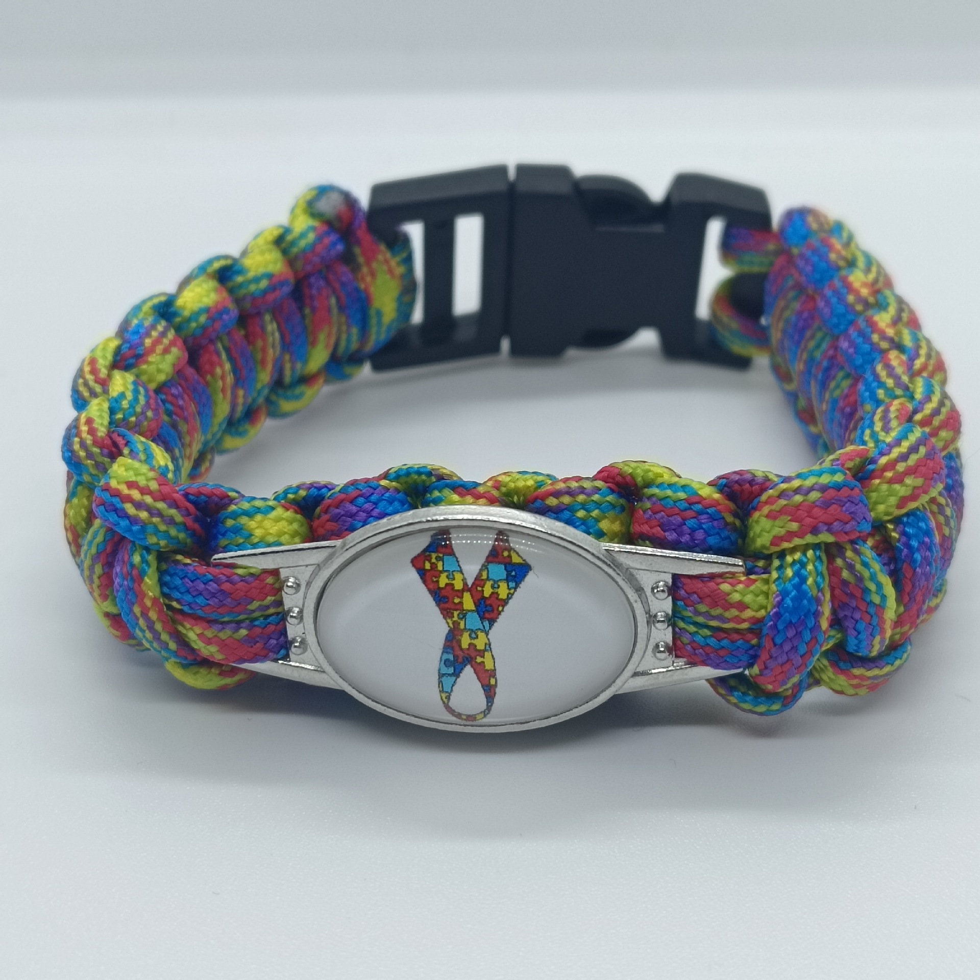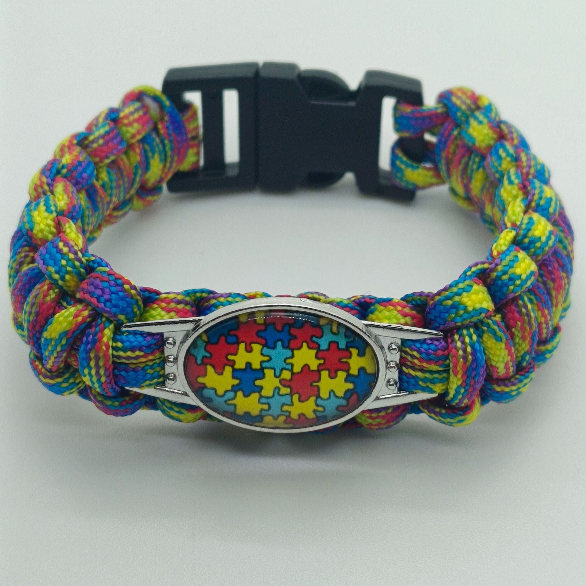 关爱自闭症患者伞绳手链 救生手链 AUTISM MOM DAD拼图彩色手链