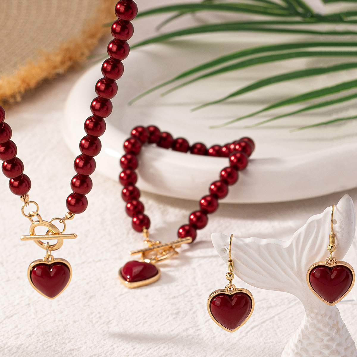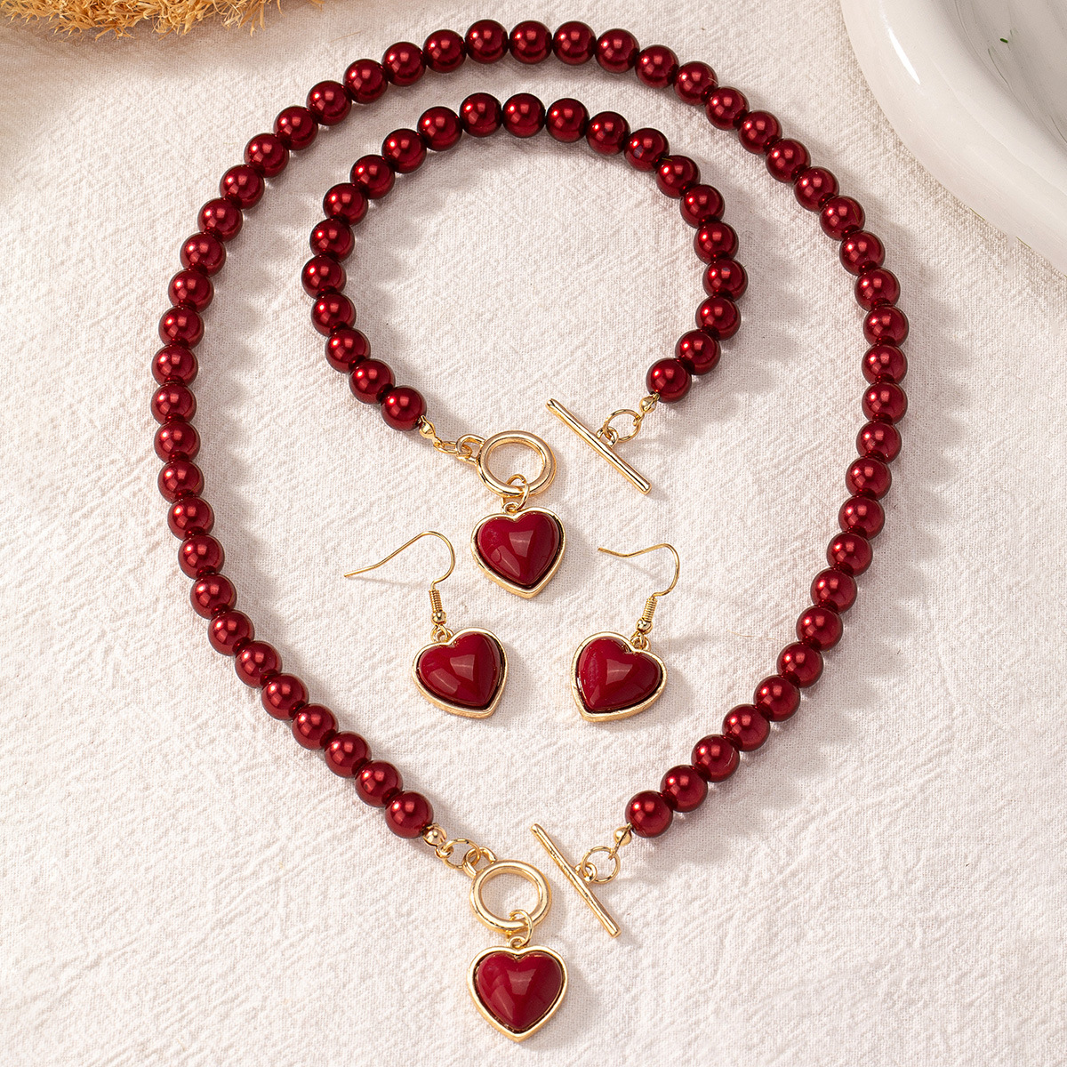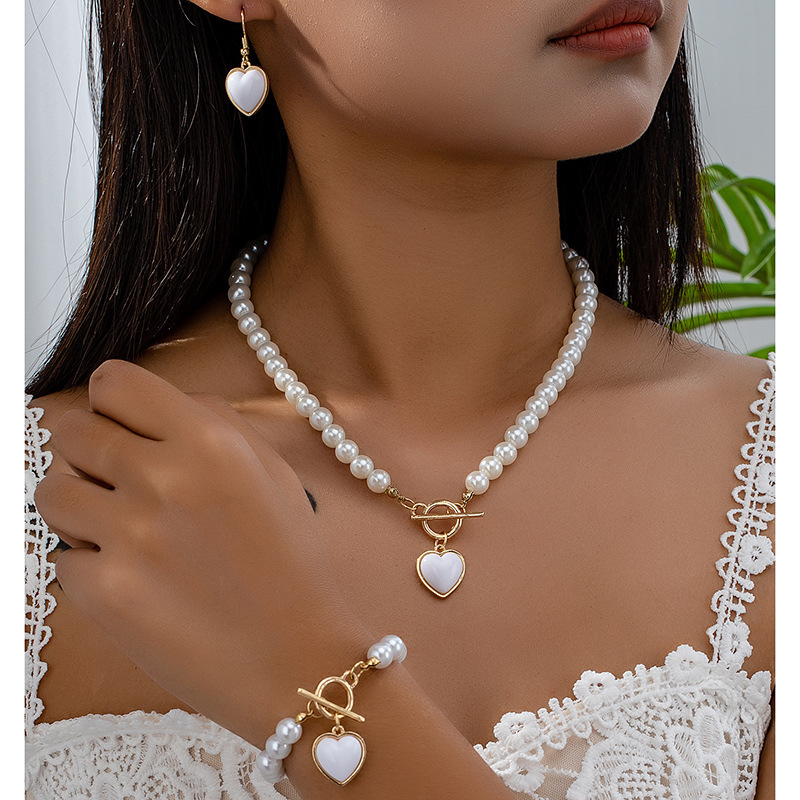 New European and American fashion high-end accessories love necklace, bracelet and a pair of earrings women's jewelry set