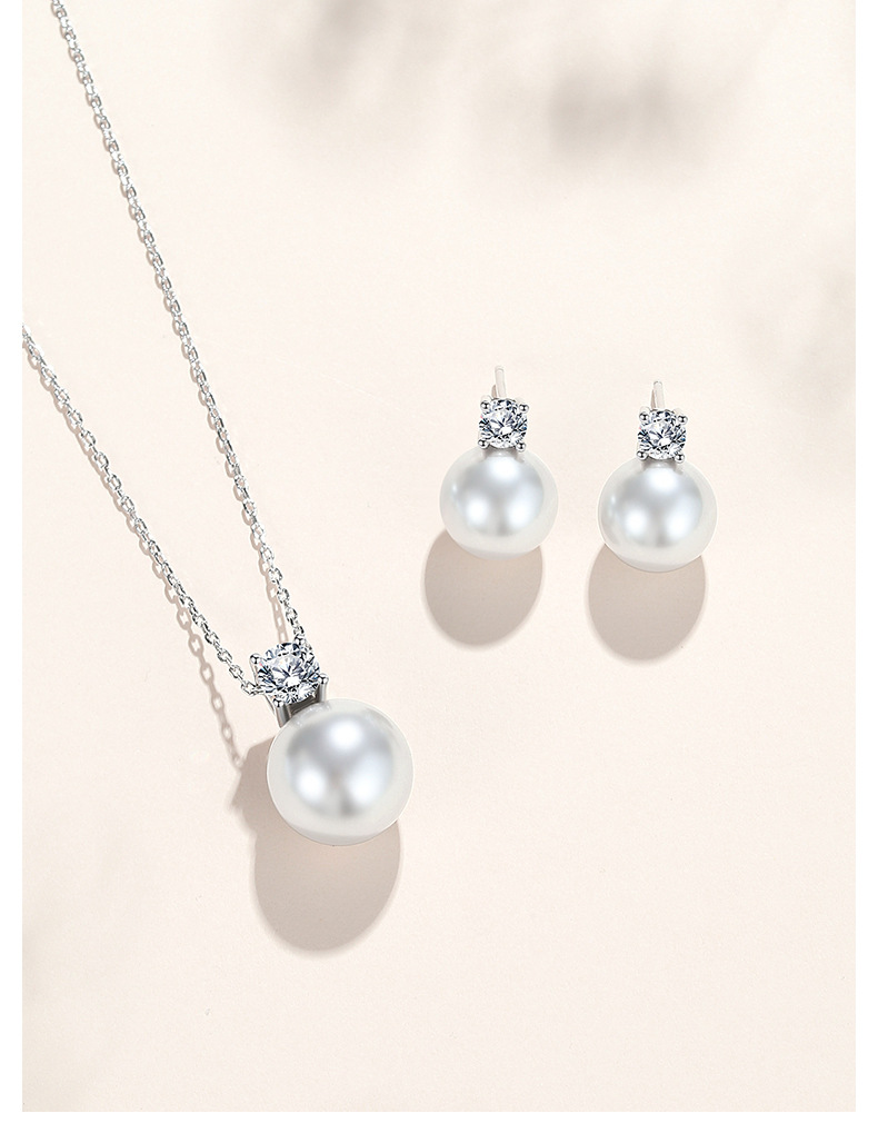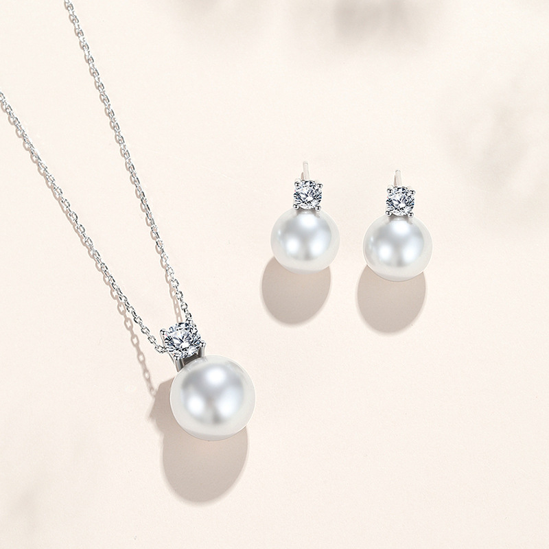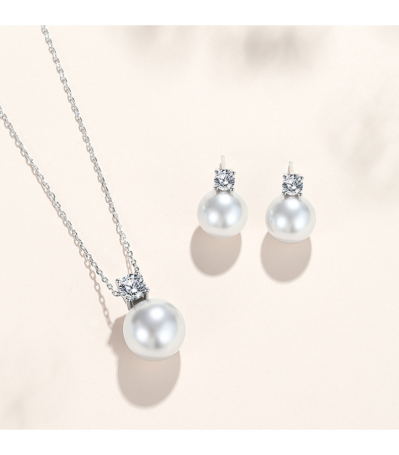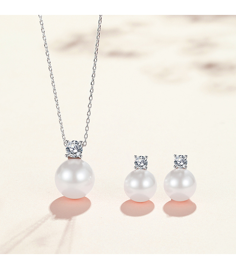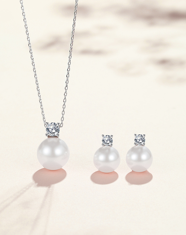 S925 Sterling Silver Necklace Women's Pearl Pendant Light Luxury Clavicle Chain Princess Pearl Ear Stud Earrings Fashion Accessories Set