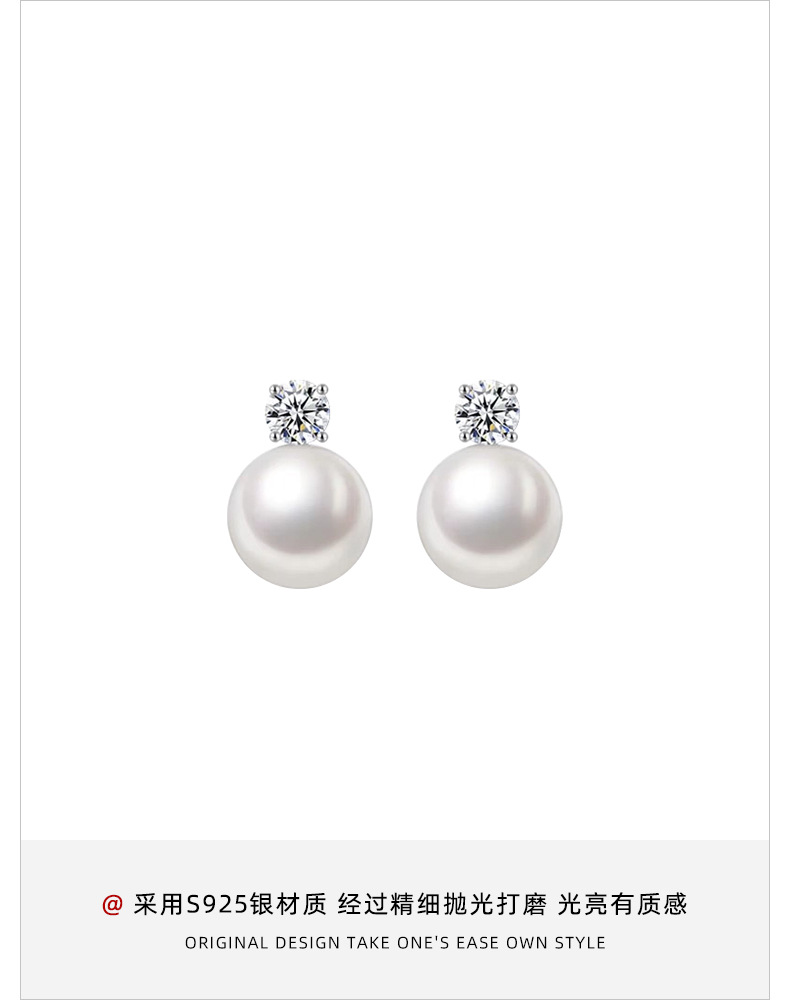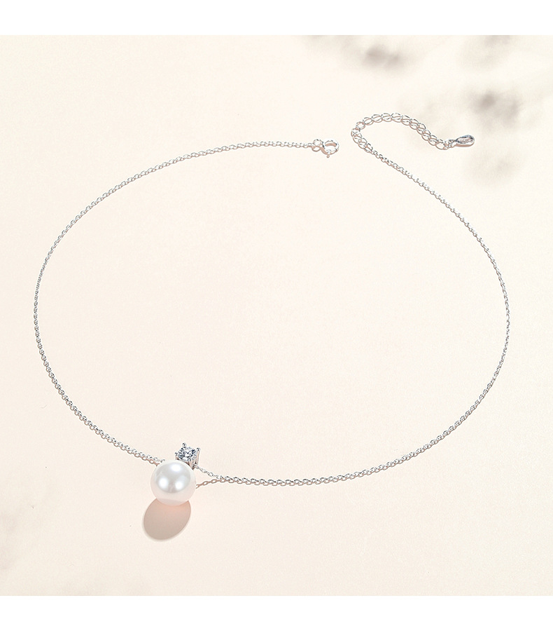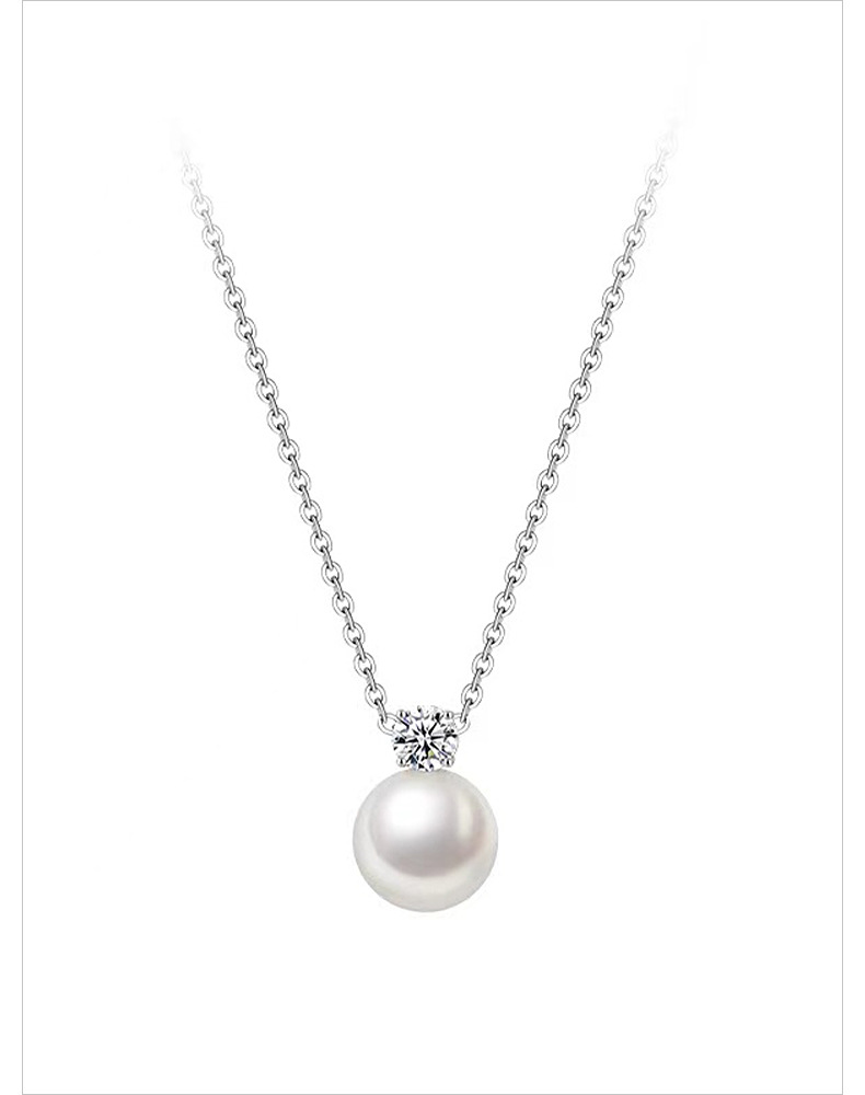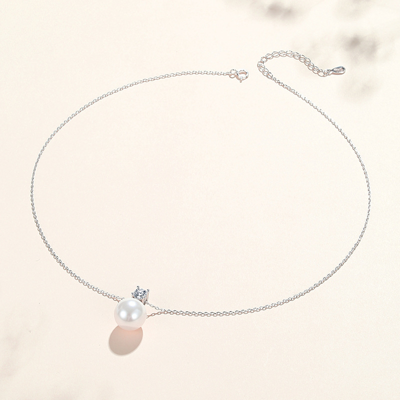 S925 Sterling Silver Necklace Women's Pearl Pendant Light Luxury Clavicle Chain Princess Pearl Ear Stud Earrings Fashion Accessories Set