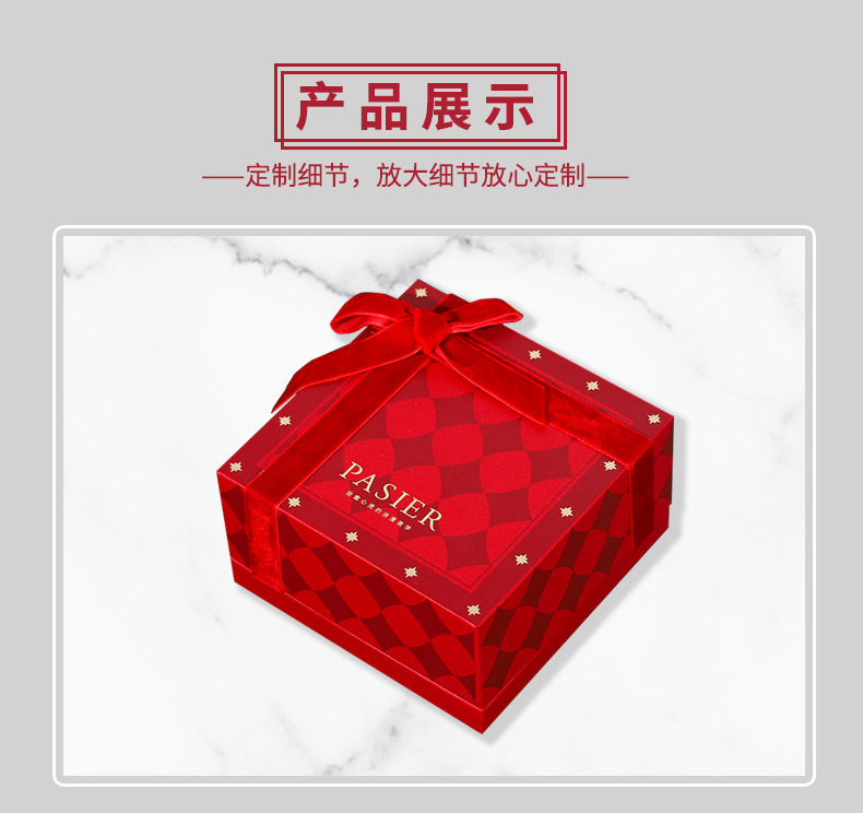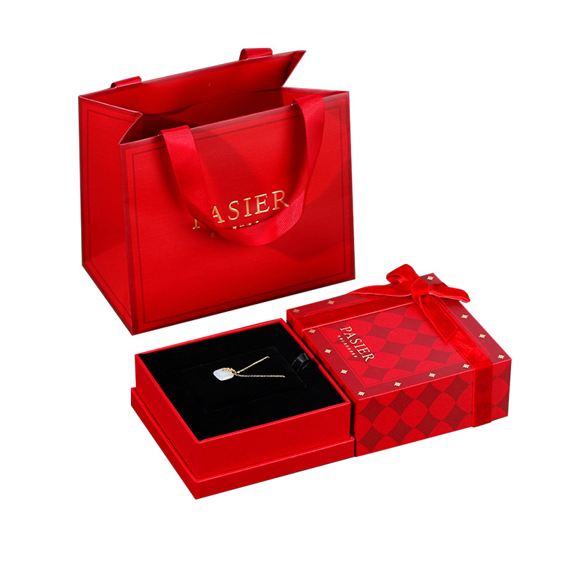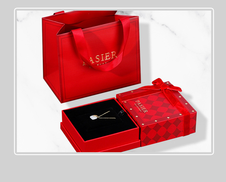 High-End Red Gift Box Set, Customized Quilted Bow Festive Necklace Jewelry Pull-Out Gift Box