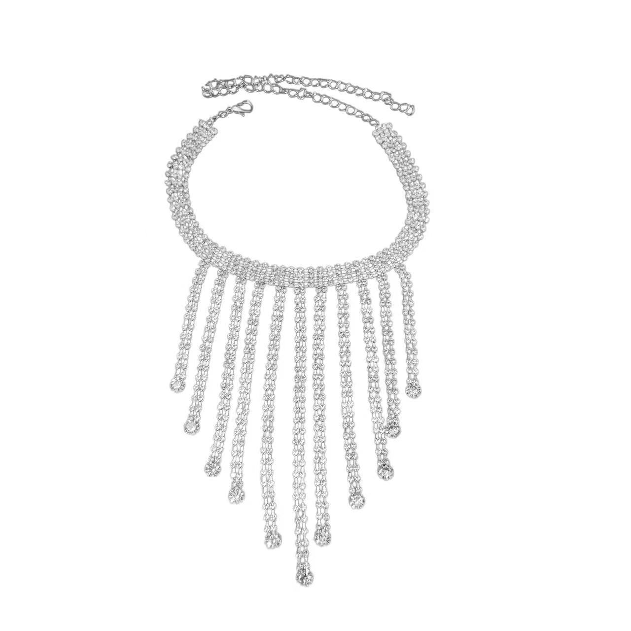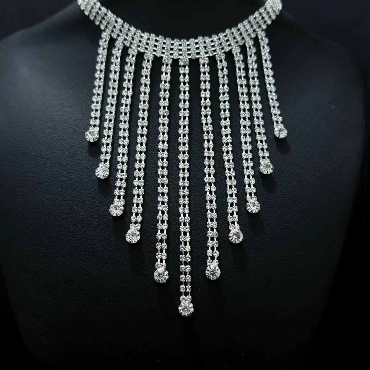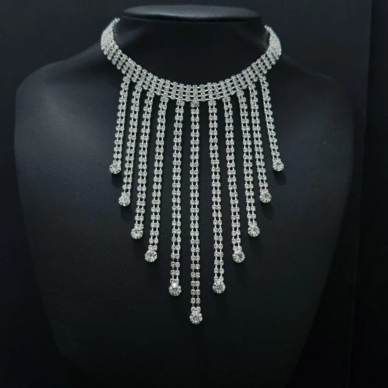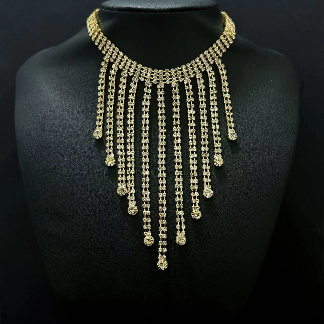 European and American luxury shiny rhinestone long tassel necklace sexy temperament simple all-match clavicle chain