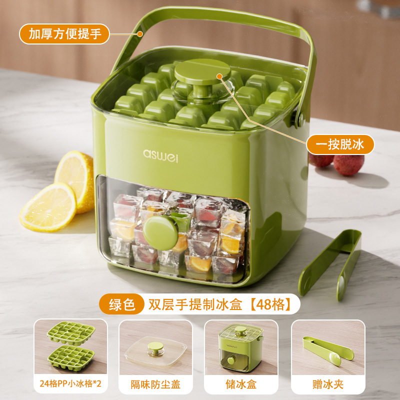 Color: 48-grid double layer-fruit green [1 second ice removal, food grade]