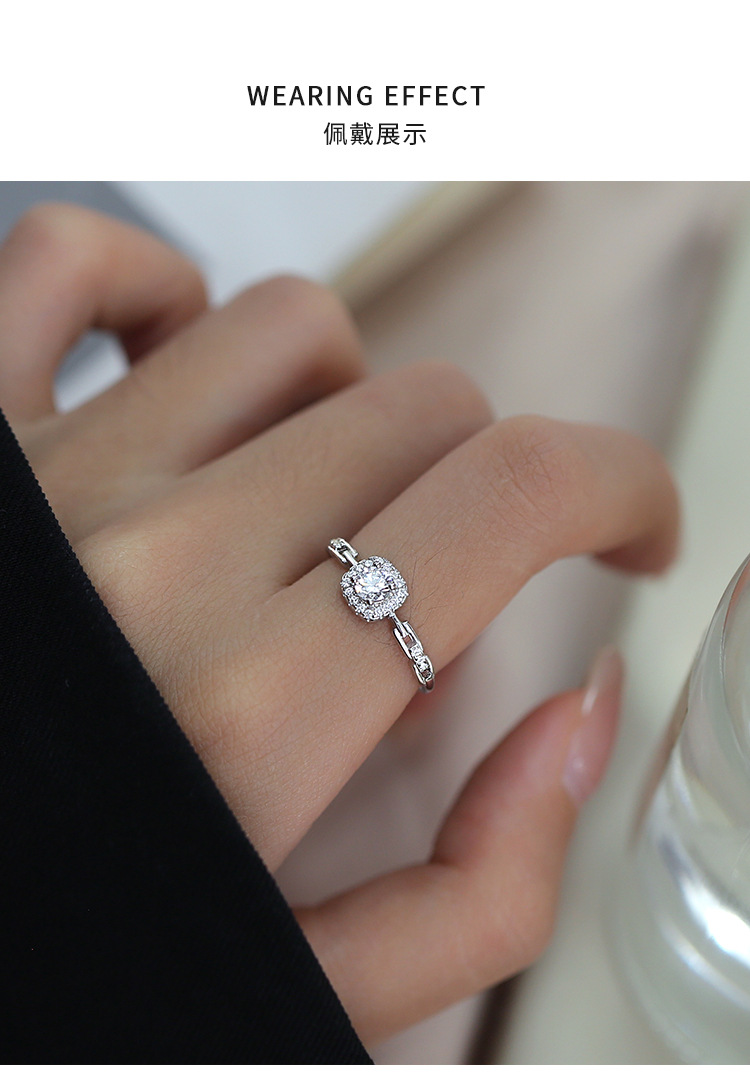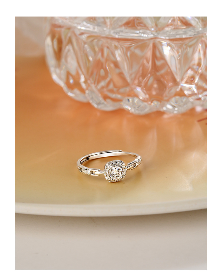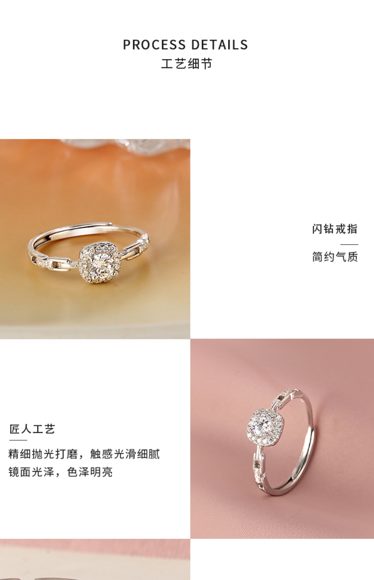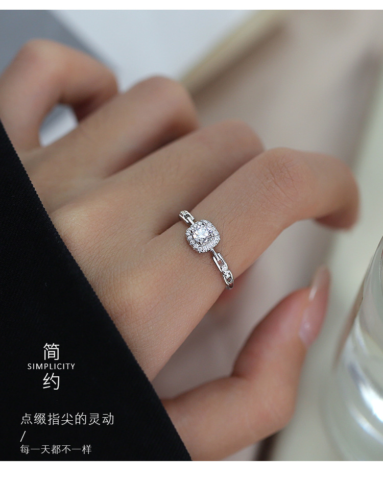 Sugar Ring Women's Ins Niche Light Luxury Advanced Sense Simulation Diamond Ring Square Diamond Chain Adjustable Opening of Index Finger