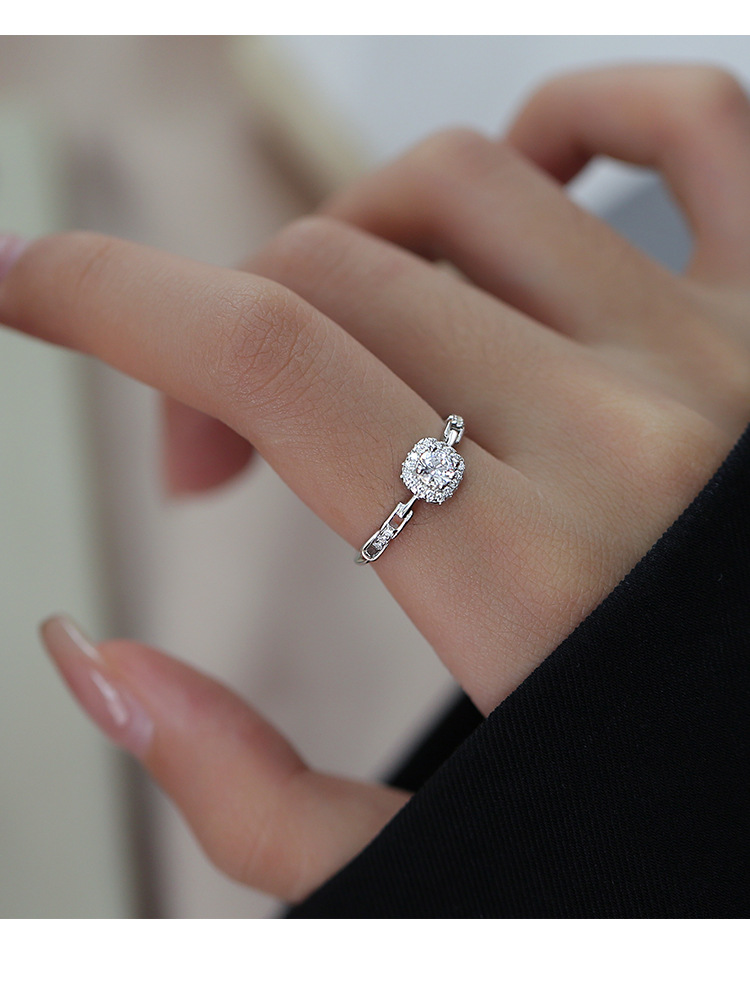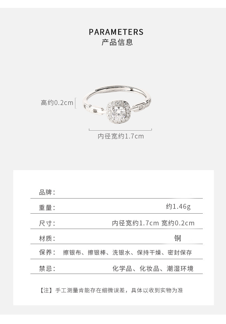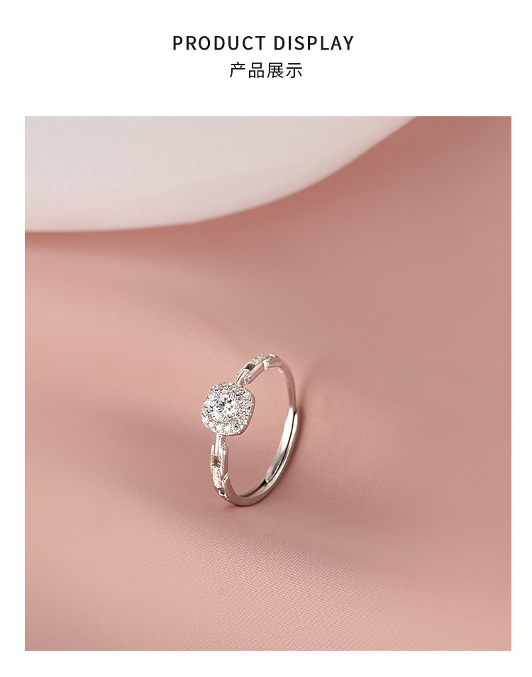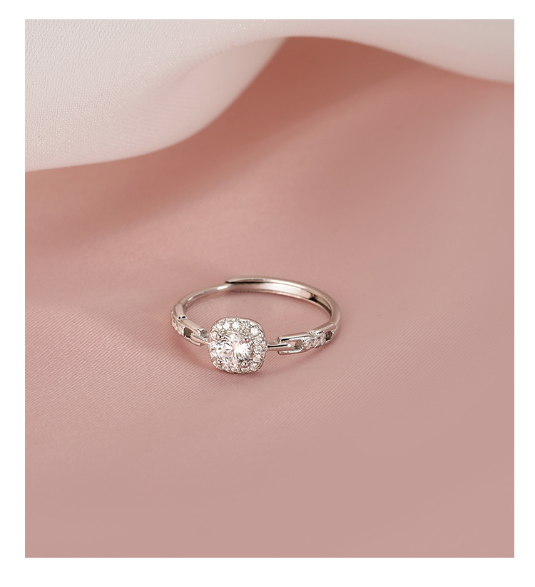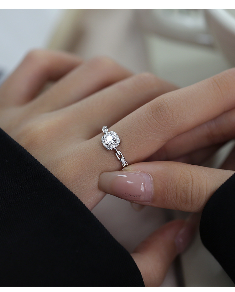 Sugar Ring Women's Ins Niche Light Luxury Advanced Sense Simulation Diamond Ring Square Diamond Chain Adjustable Opening of Index Finger