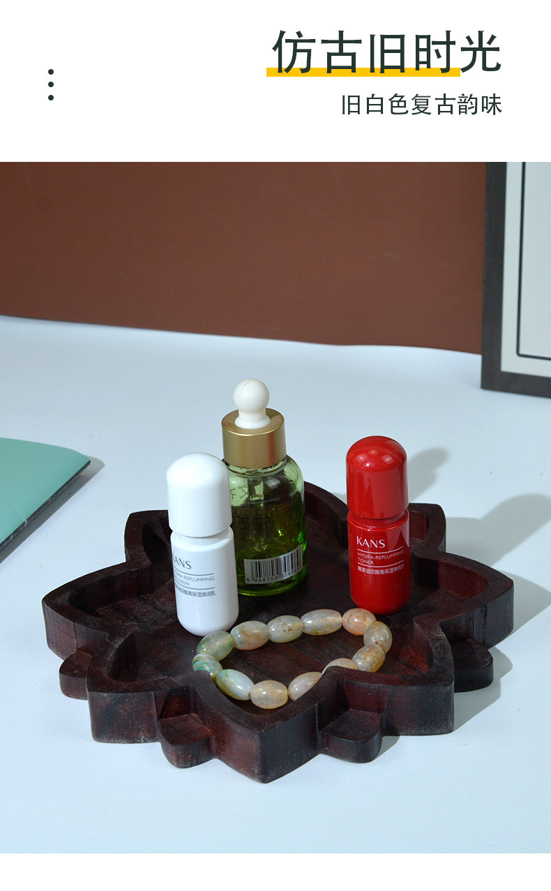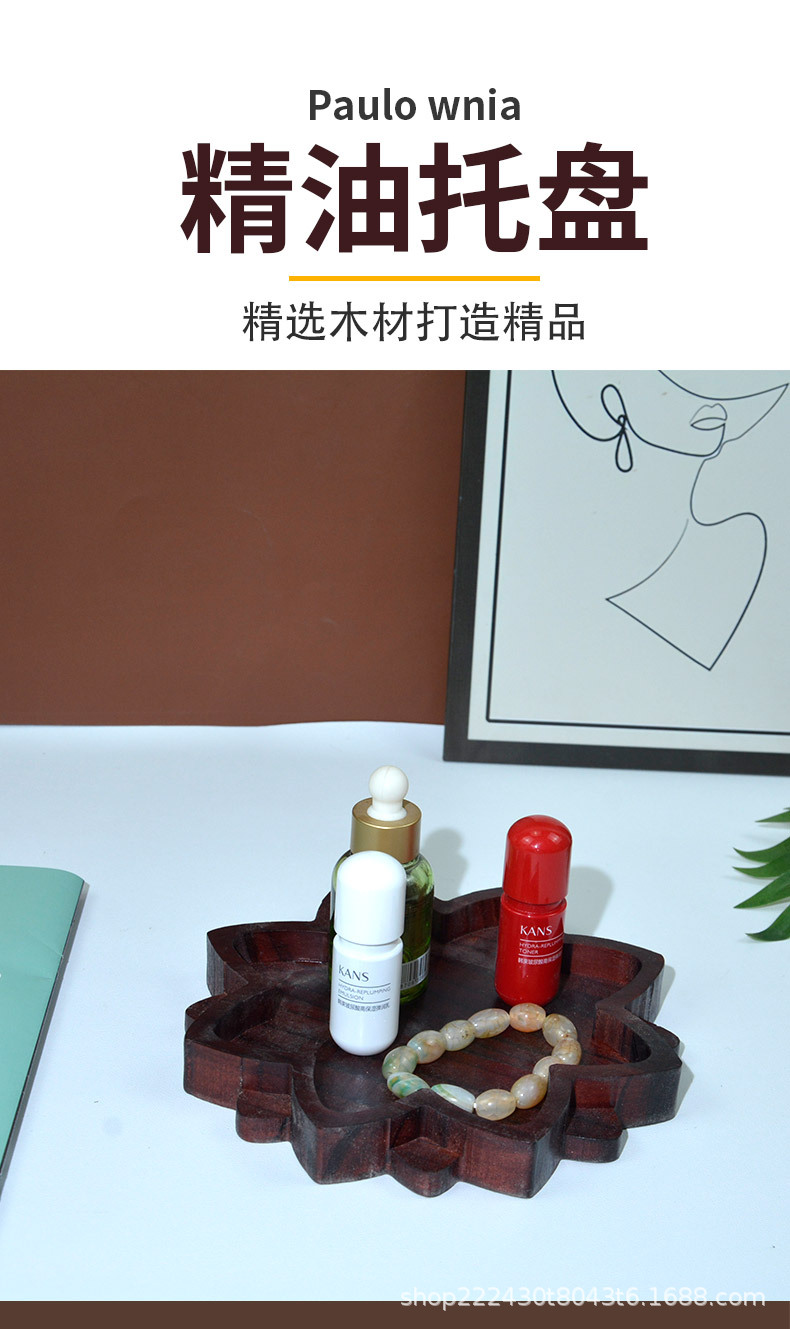 Wooden Lotus Tray Wooden Crystal Tray Foreign Trade Vintage Wooden Aromatherapy Essential Oil Tray Storage Tray