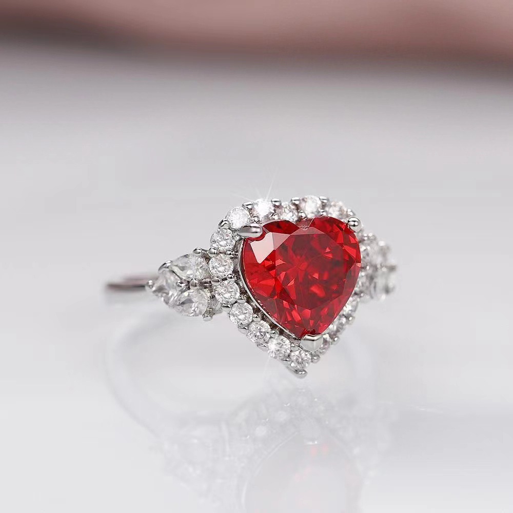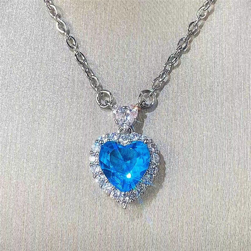 Cross-border blue heart-shaped pendant necklace ring earrings set 2024 new trend explosions jewelry spot