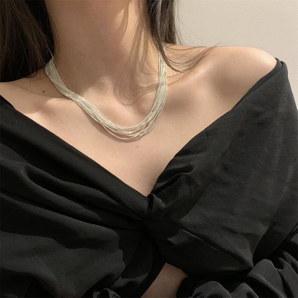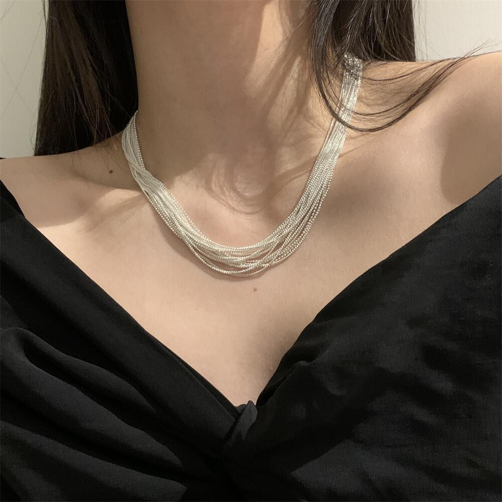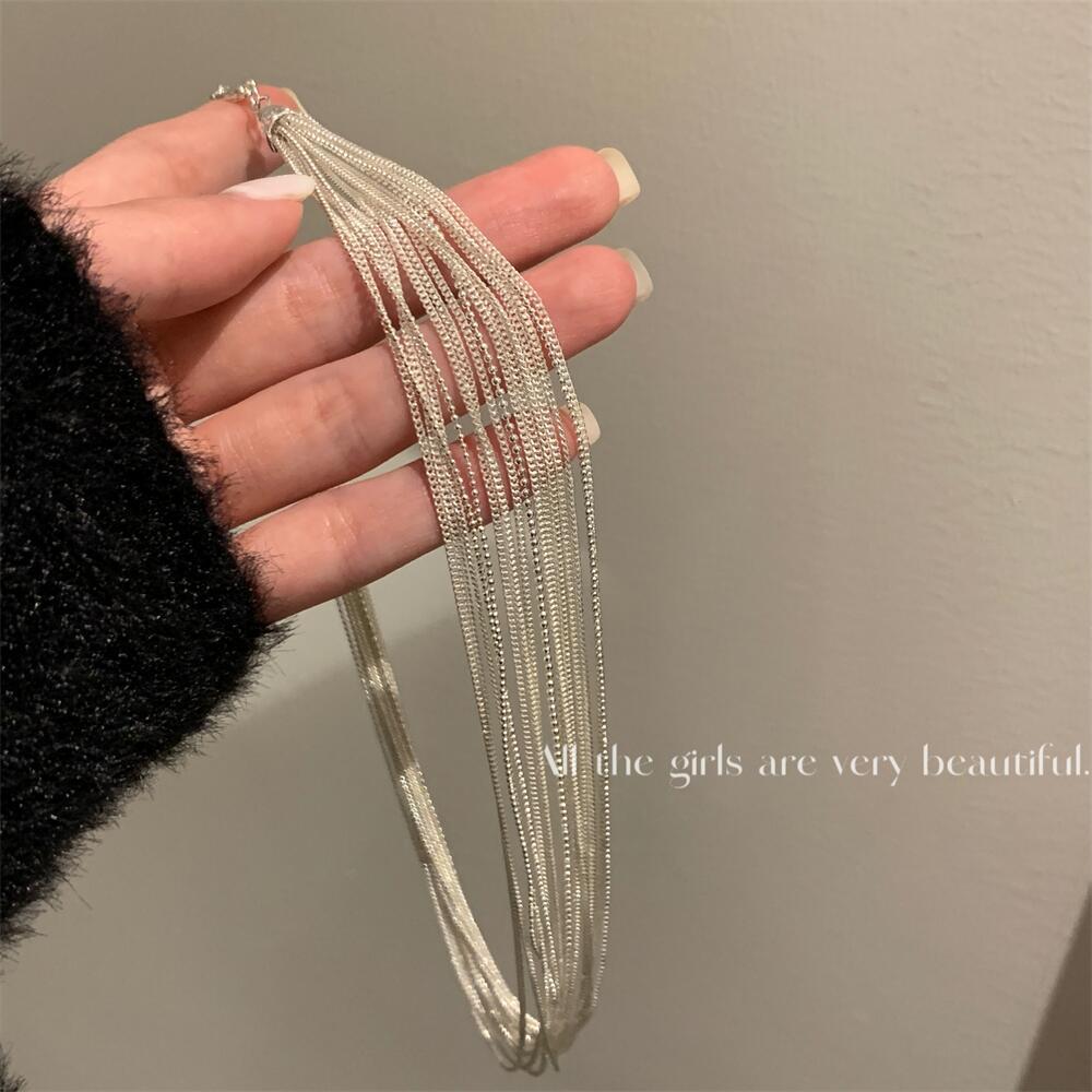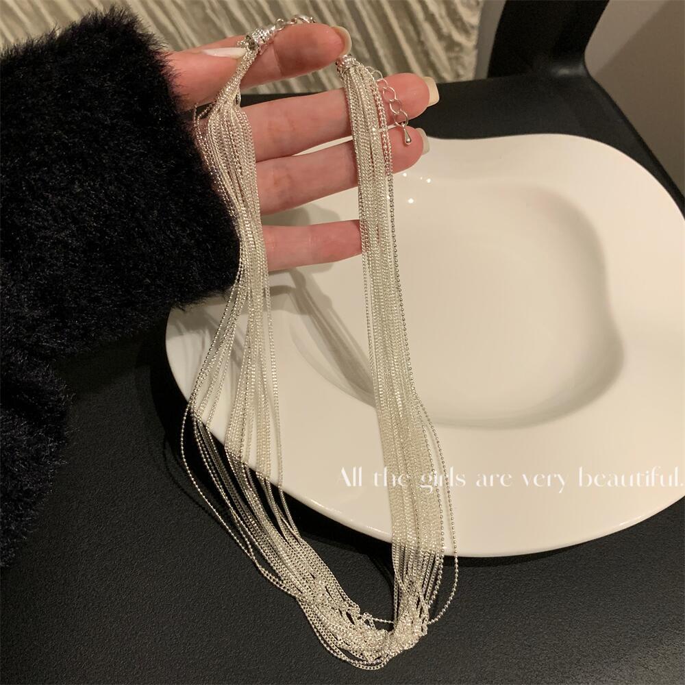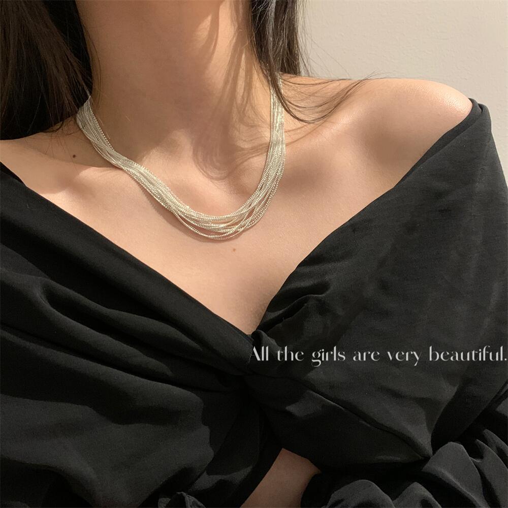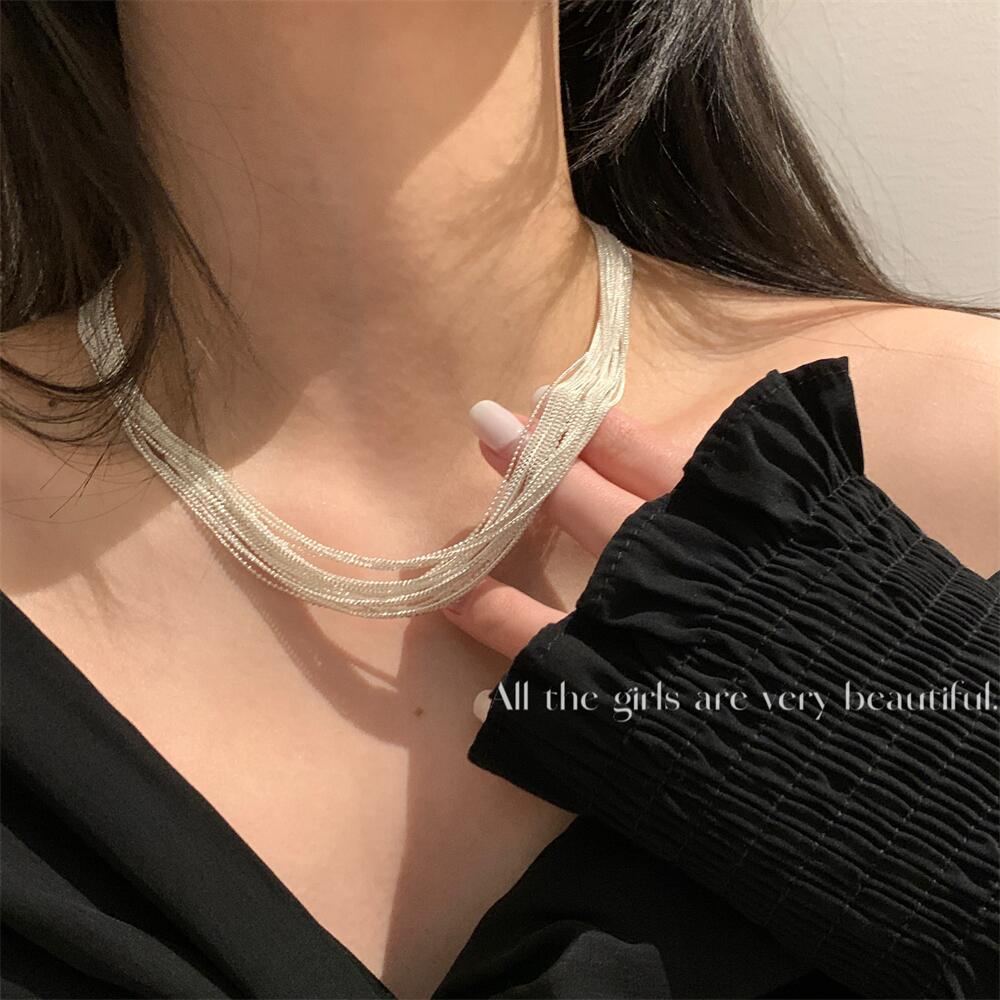 High-grade Metallic Silver Multi-layer Necklace Women's European and American-style Sexy Exaggerated Stacked Collarbone Chain Simple Fashionable Necklace Chain