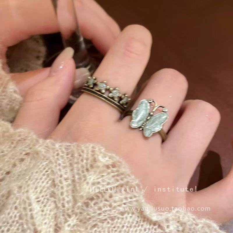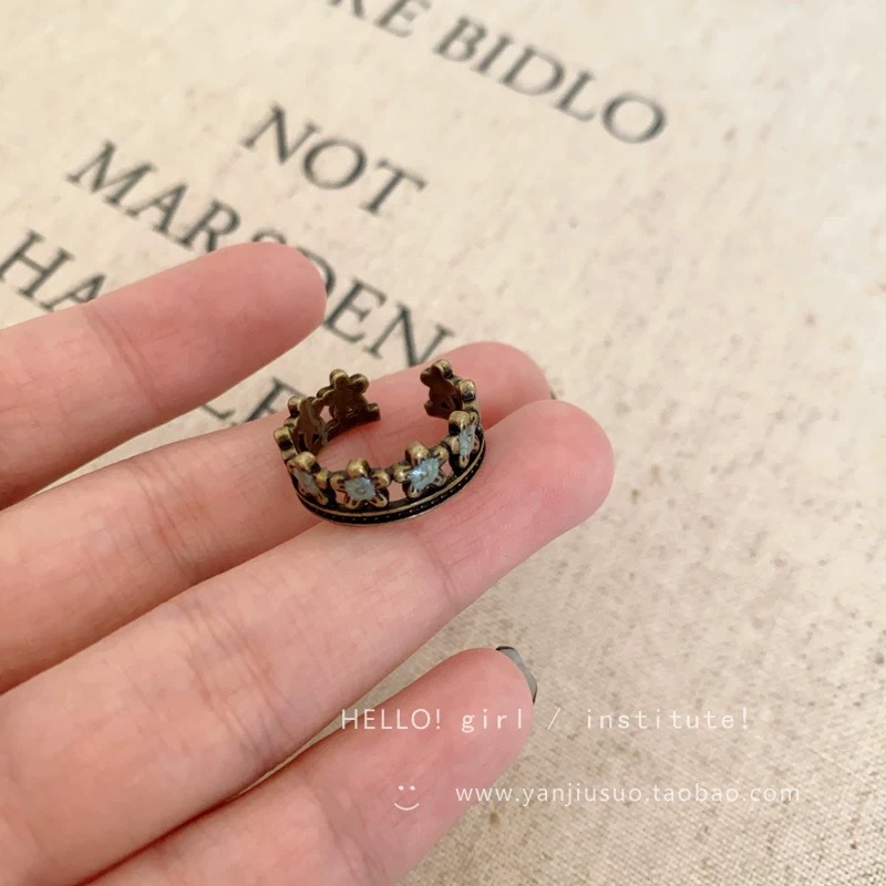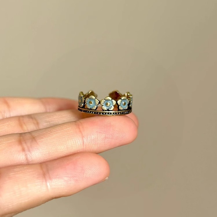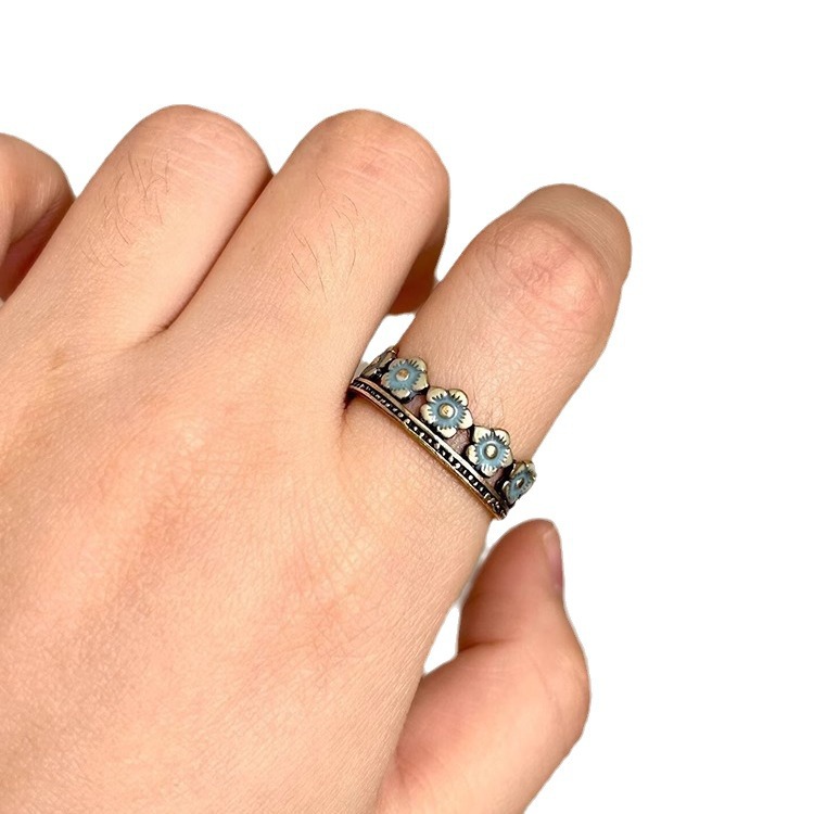 "Greek Flower God" Retro Blue Flower Old Ring New High-end Light Luxury Fashion Open Ring for Women