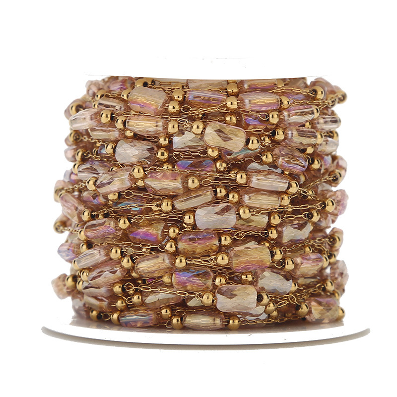 Cross-border Hot Sale Crystal Chain Vacuum Plated Stainless Steel Chain Handmade DIY Bracelet Necklace Accessories
