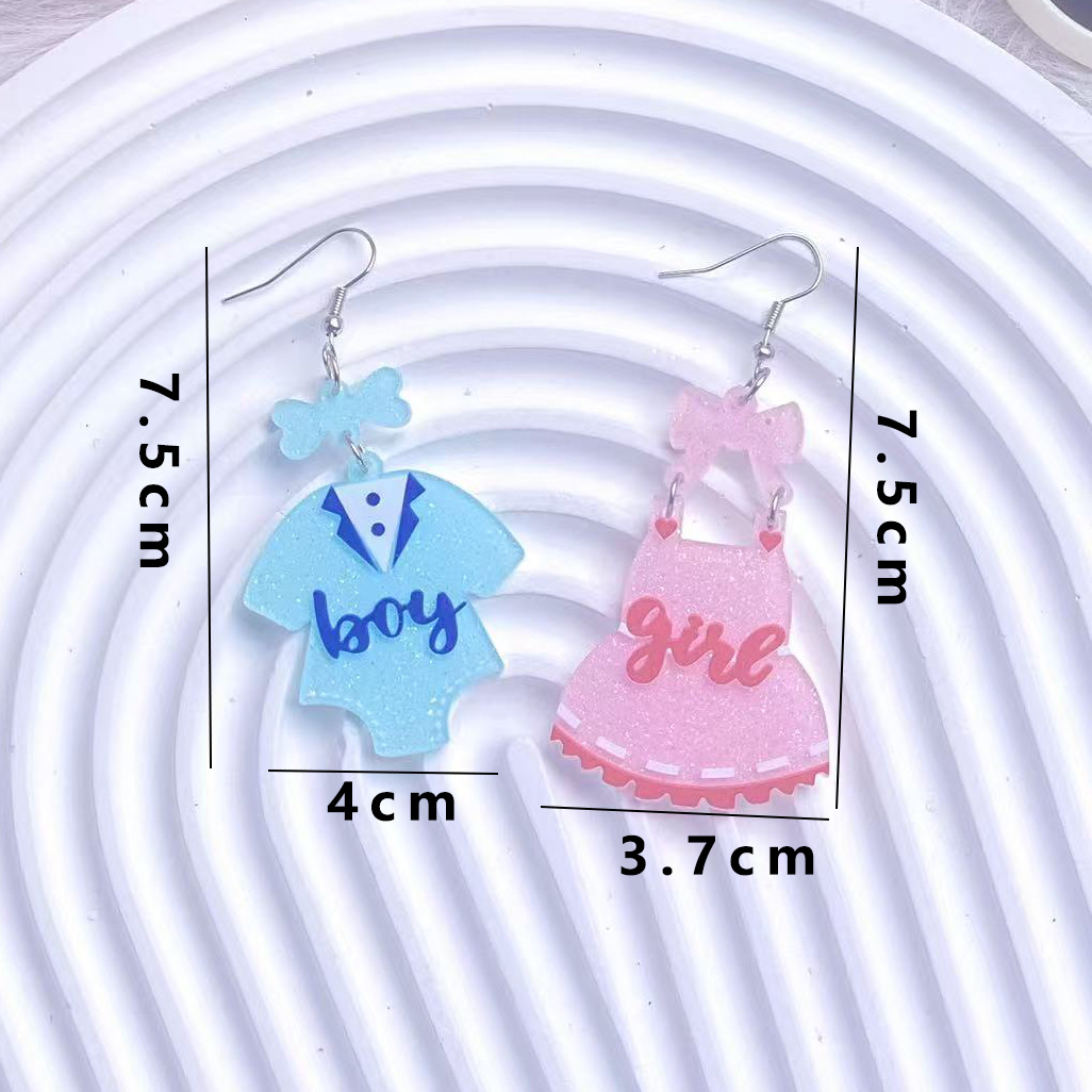 Cross-border new blingbling pink blue clothes asymmetric acrylic earrings bow cute earrings