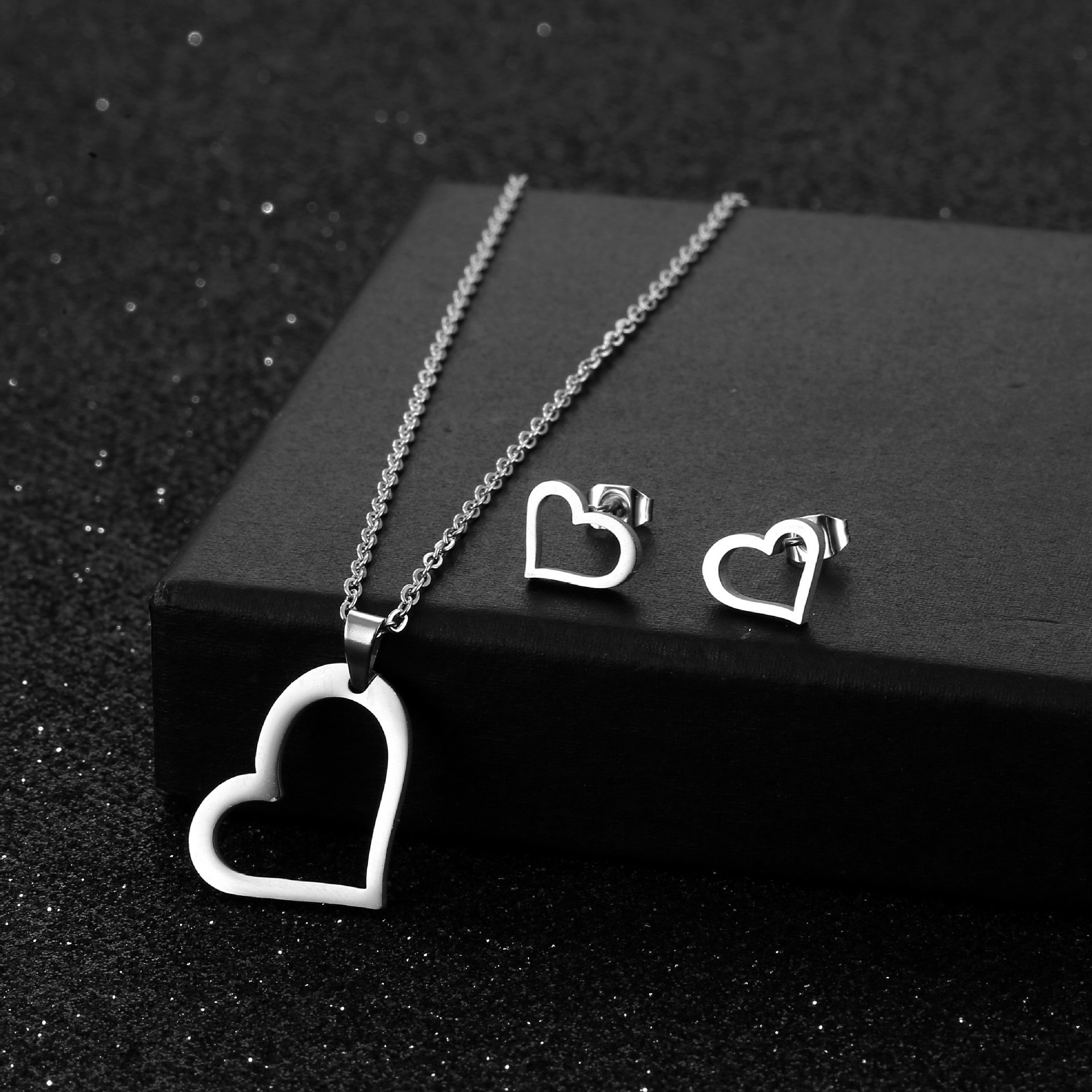 Mexico Love Necklace Earrings Set Women's Cross-border Simple Heart-shaped Necklace Hollow Stainless Steel Jewelry Three-piece Set