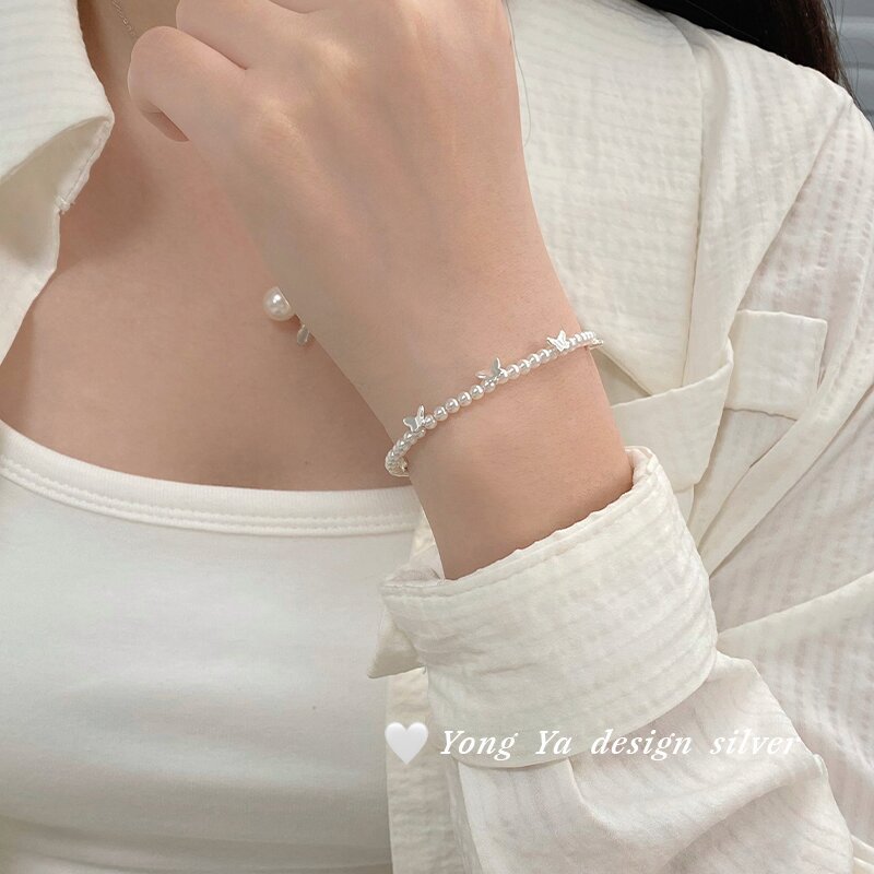 Yongya S925 full-body sterling silver sweet mori butterfly pearl bracelet light luxury small clear fairy style bracelet new