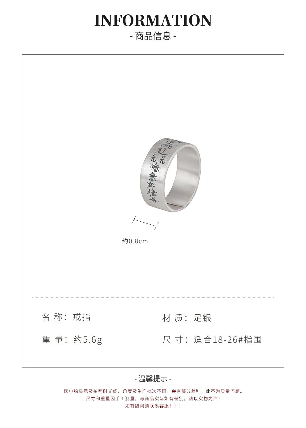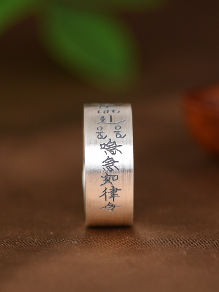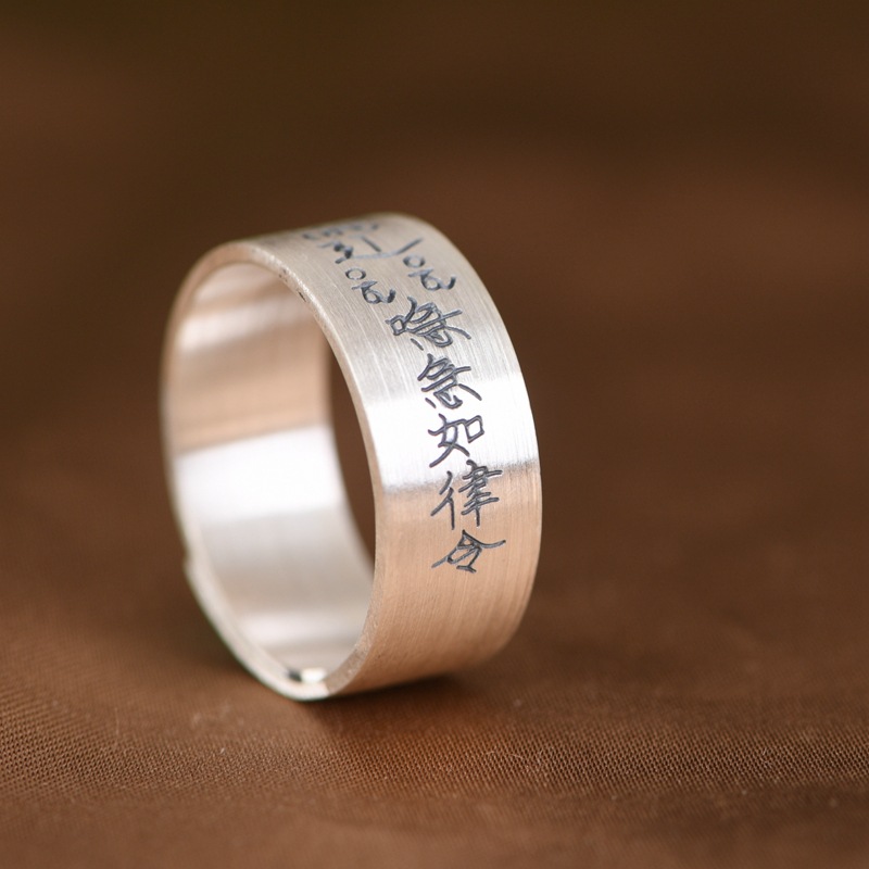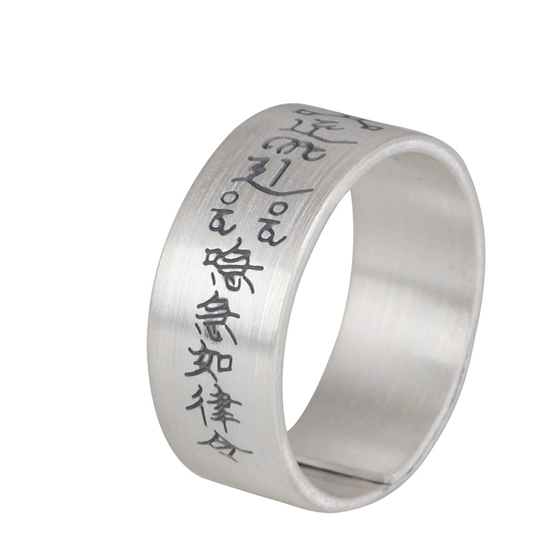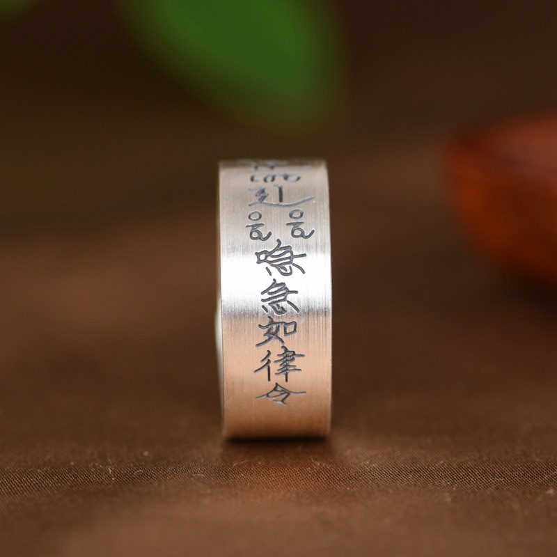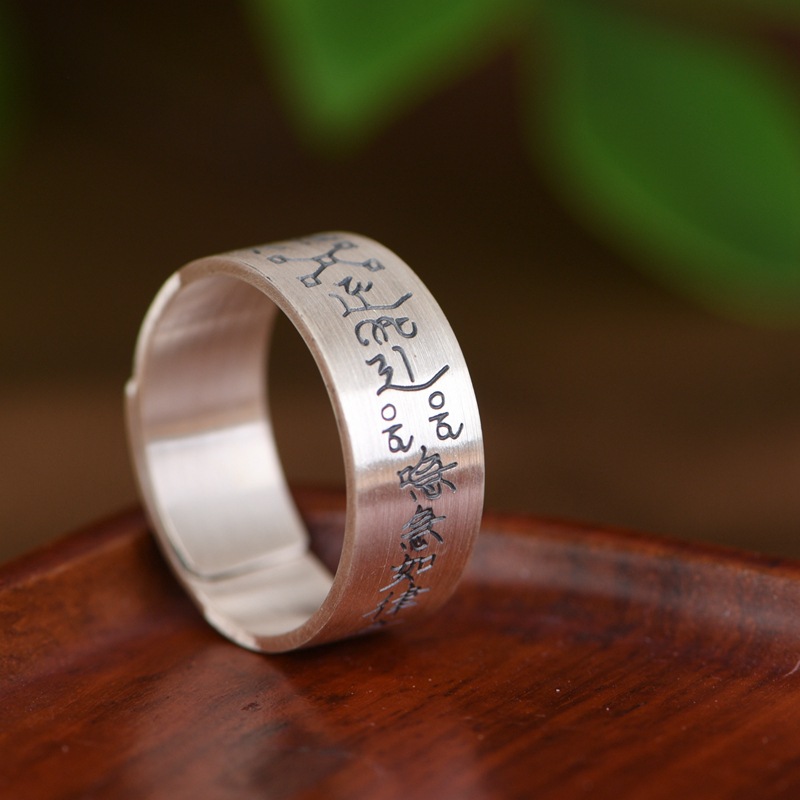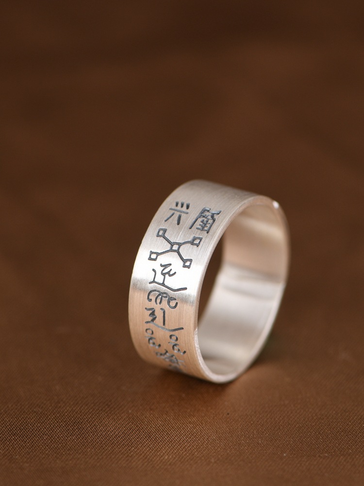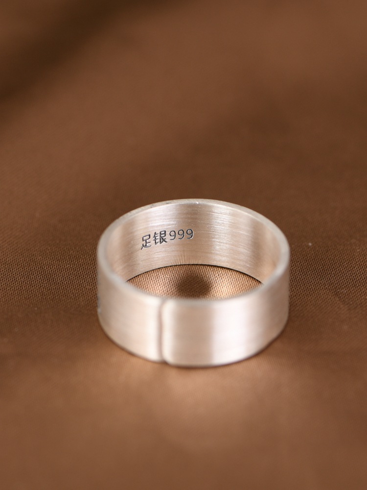 King of the Golden Deer Foot Silver 999 such as Law Text Wide Version Retro Old Ethnic Culture Ring Silver Jewelry Ring for Men and Women
