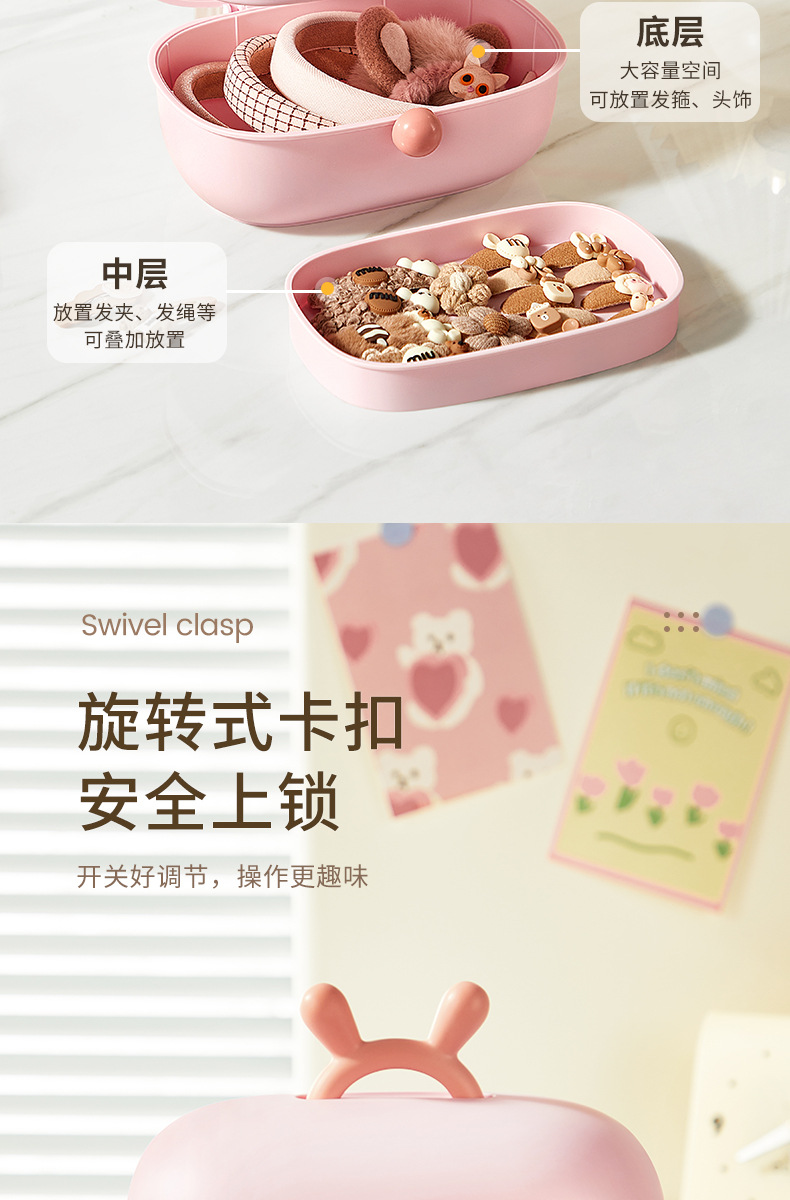New Household Desktop Multi-layer Split Hair Accessories Jewelry Storage Box Children Cartoon Hair Rope Hair Card Hair Accessories Box Wholesale