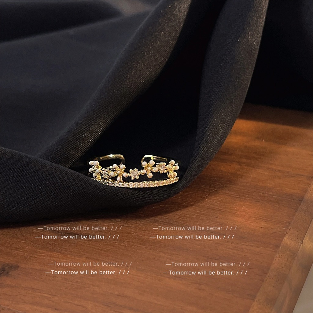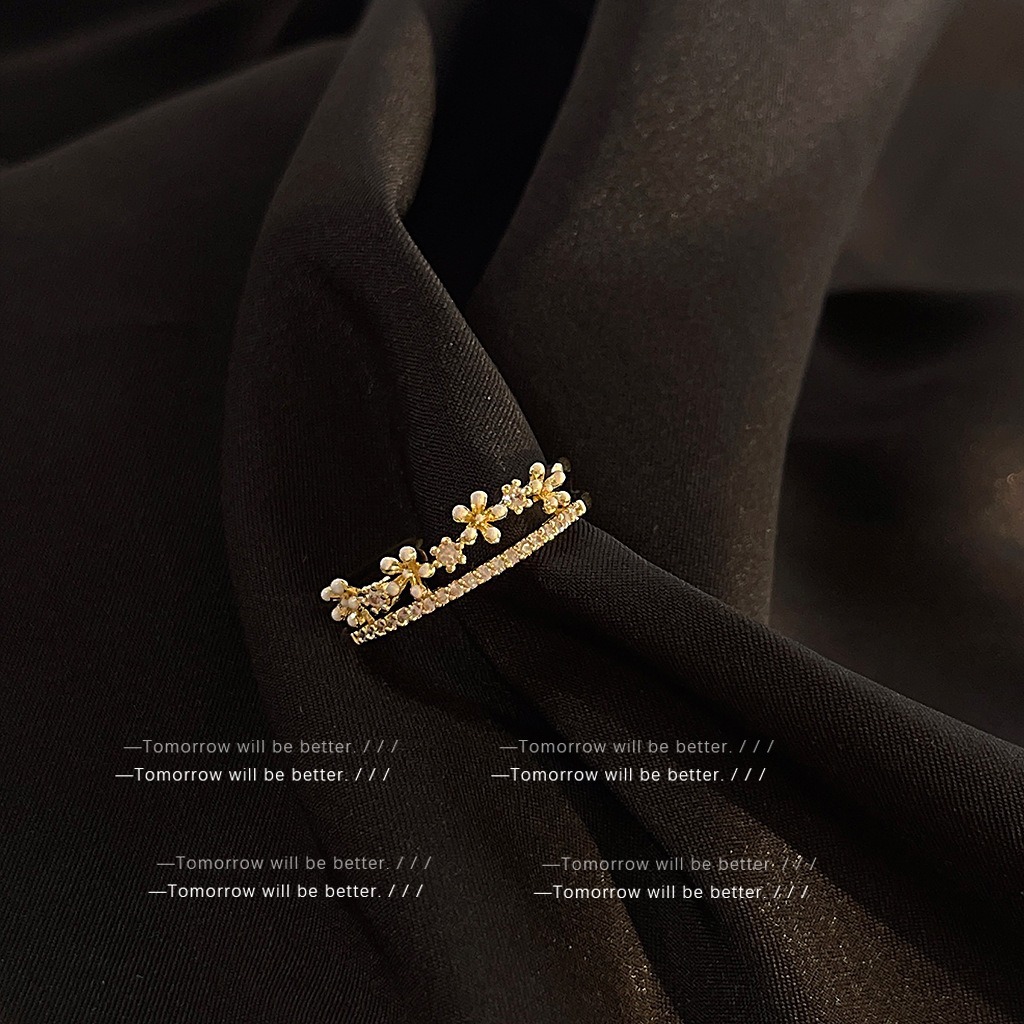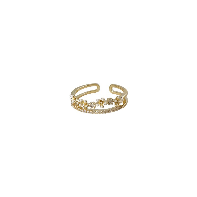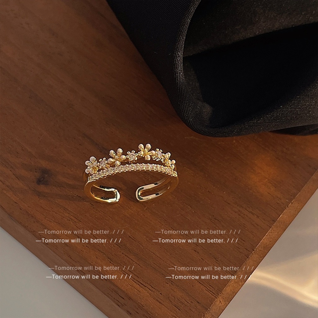 Exquisite Micro-inlaid Zircon Flower Double-layer Ring Women's Japanese and Korean Niche High-end Sweet Fashion Open Finger Ring