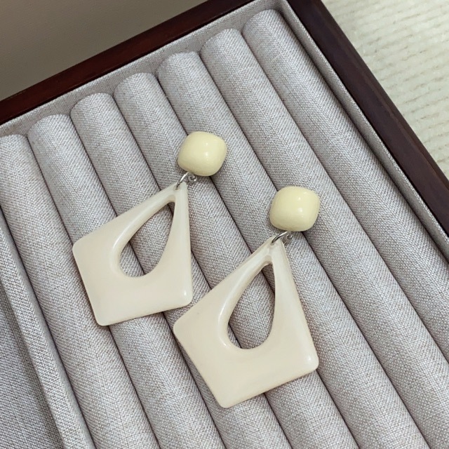 Hong Kong Style White Retro French Court Style Milk White Exaggerated Earrings Advanced Sense Earrings without Ear Holes