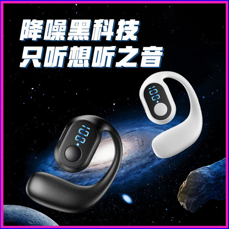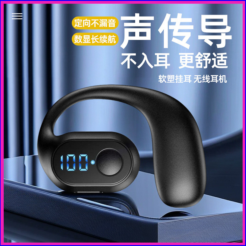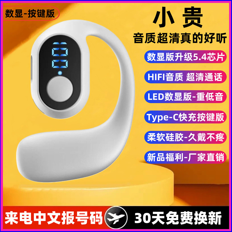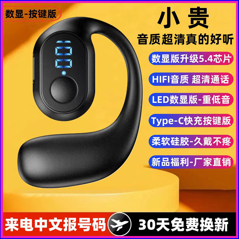 New monaural hanging line bluetooth headset: Cross-border new wireless bluetooth headset does not enter the ear digital display button version soft silicone long wear does not hurt long continued