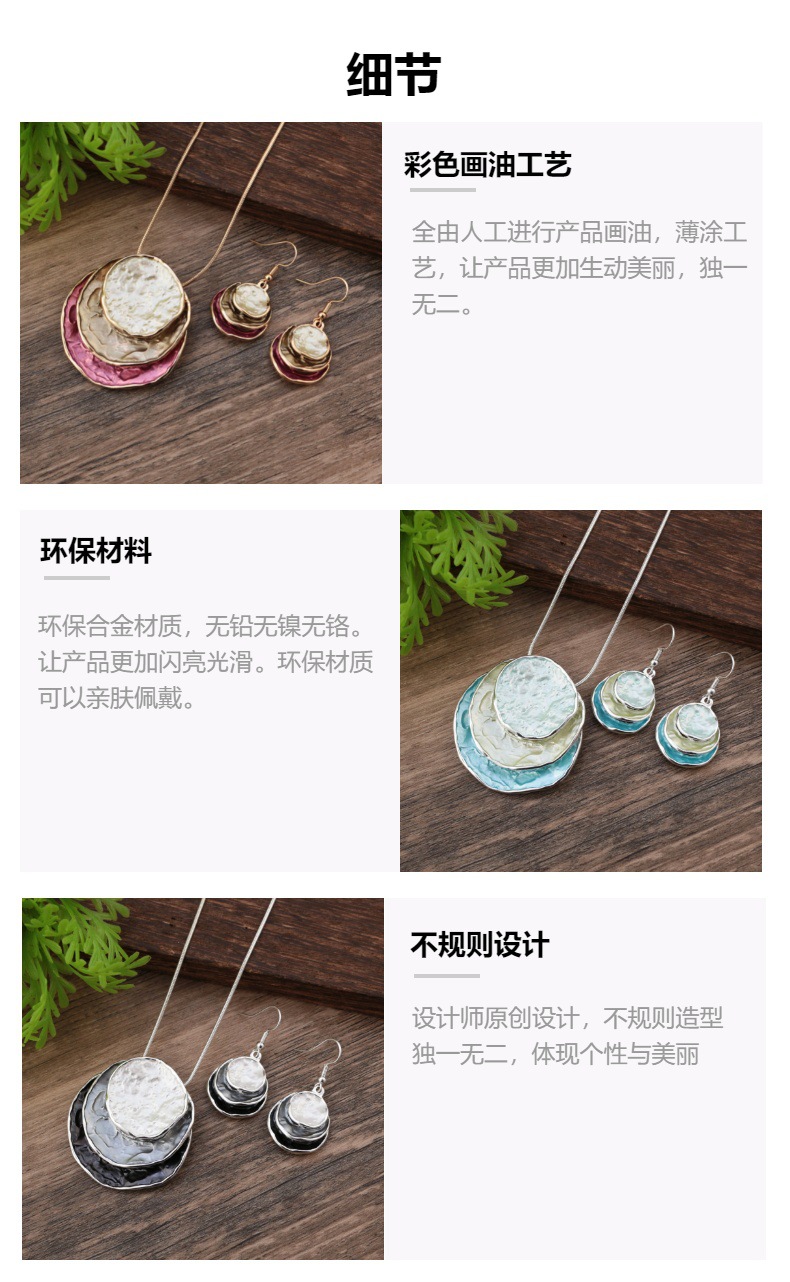 Cross-border Explosions Enamel Three-layer Ring Hollow Pendant Earrings suit Bohemian Women's Jewelry suit