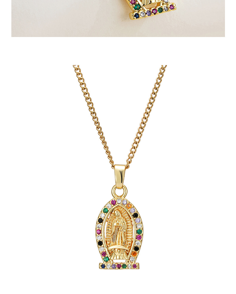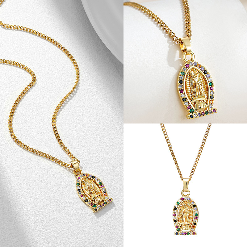 European and American Fashion Religious Copper Emblem with Colorful Zircon Pendant Women's Jewelry Virgin Mary Necklace Versatile
