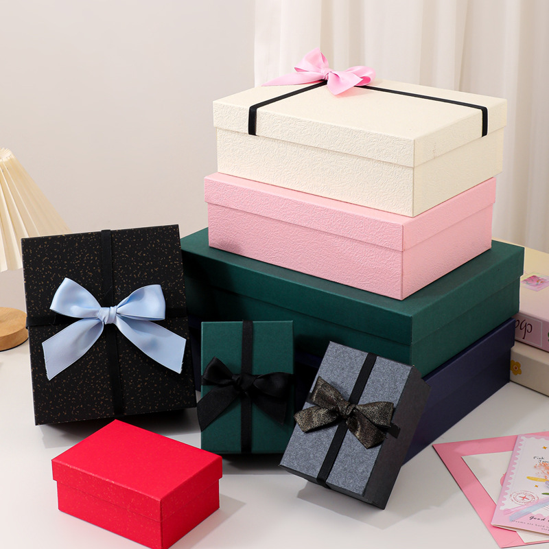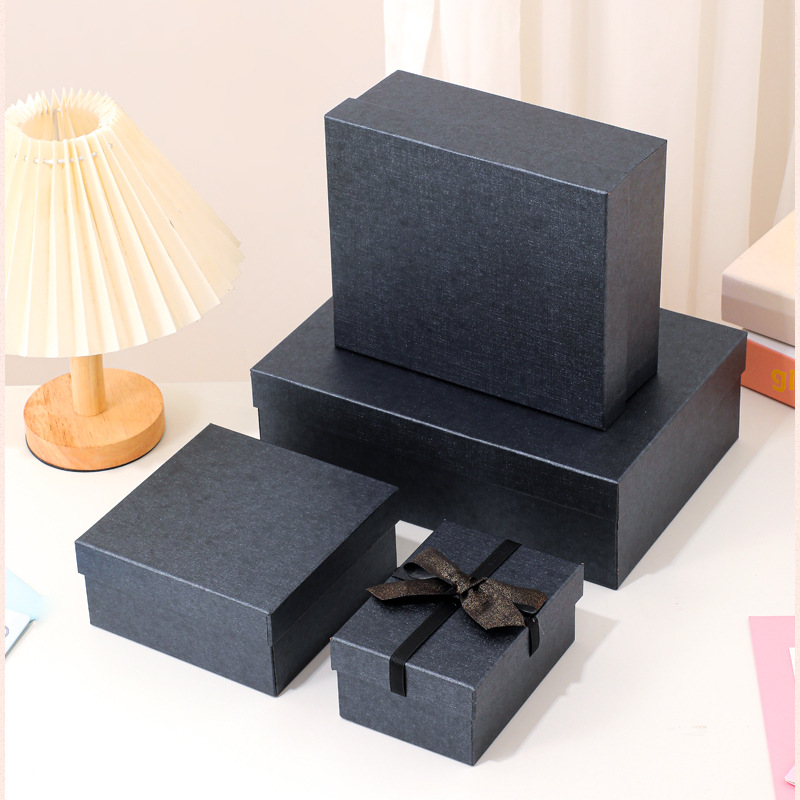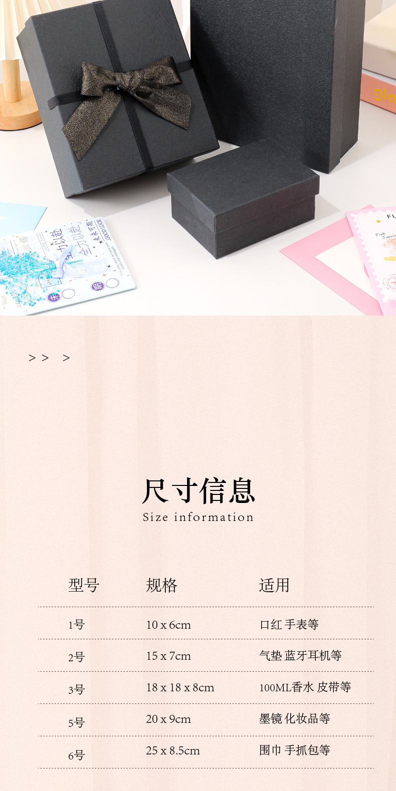 Specification model: Black and gray textured bow gift box; 15*15*7cm