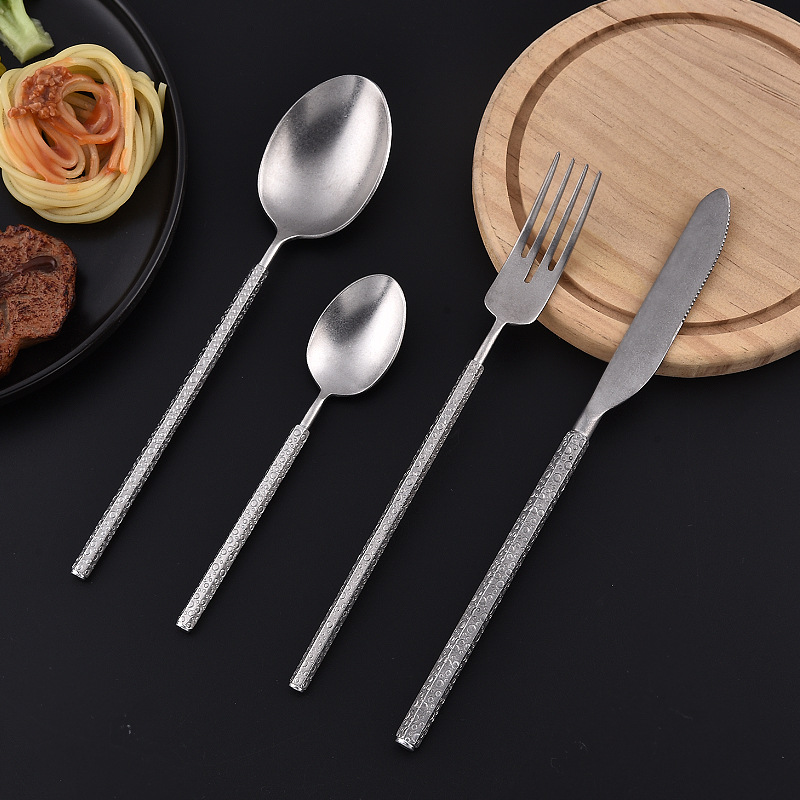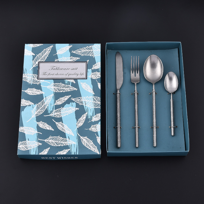 304 Stainless Steel Table Knife, Fork and Spoon, Tea Spoon, Four Main Pieces, Diamond Pattern Handle, Hotel Western Tableware, Gift Tableware Set