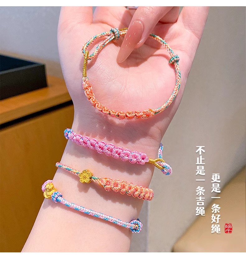 Color: Dragon boat festival peach blossom gold and silver thread bracelet red