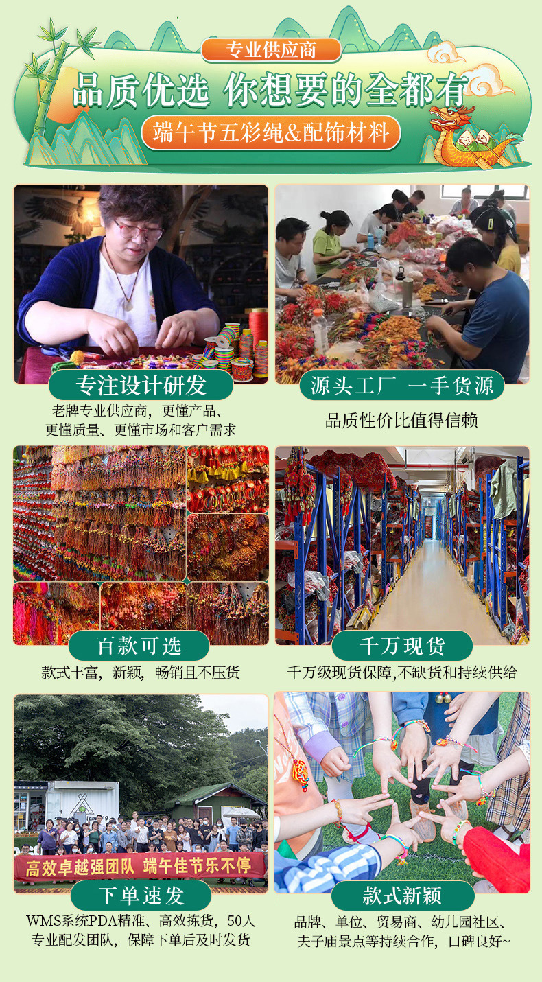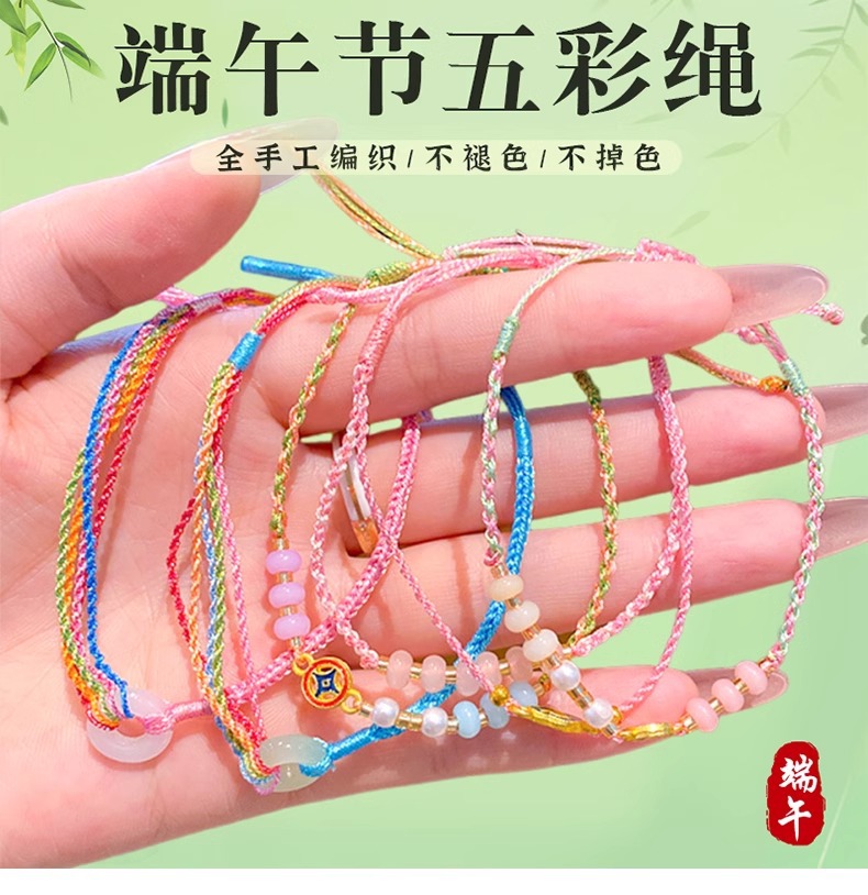 Color: Dragon boat festival peach blossom gold and silver thread bracelet grass green