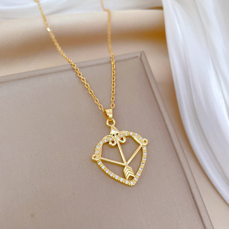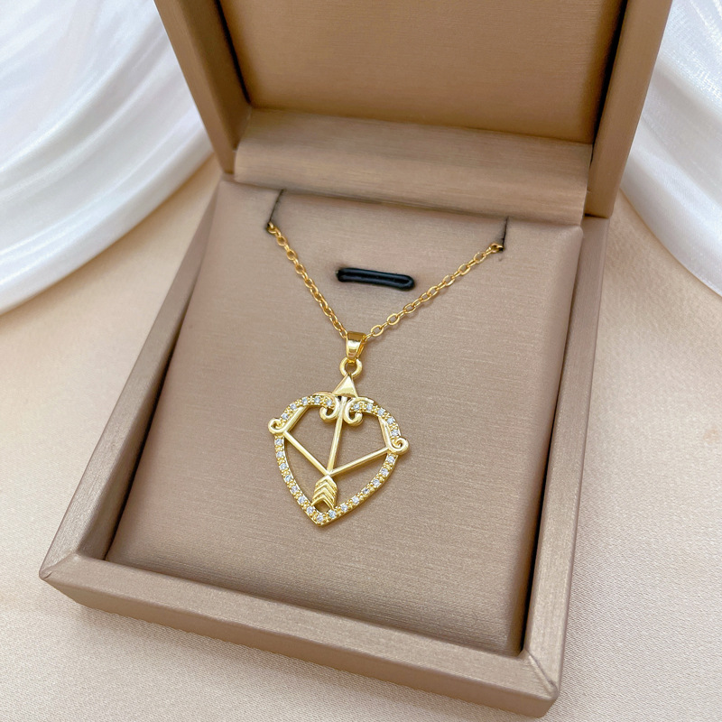 [Titanium Steel] Cupid love light luxury temperament gorgeous diamond necklace female all-match clavicle chain titanium steel chain
