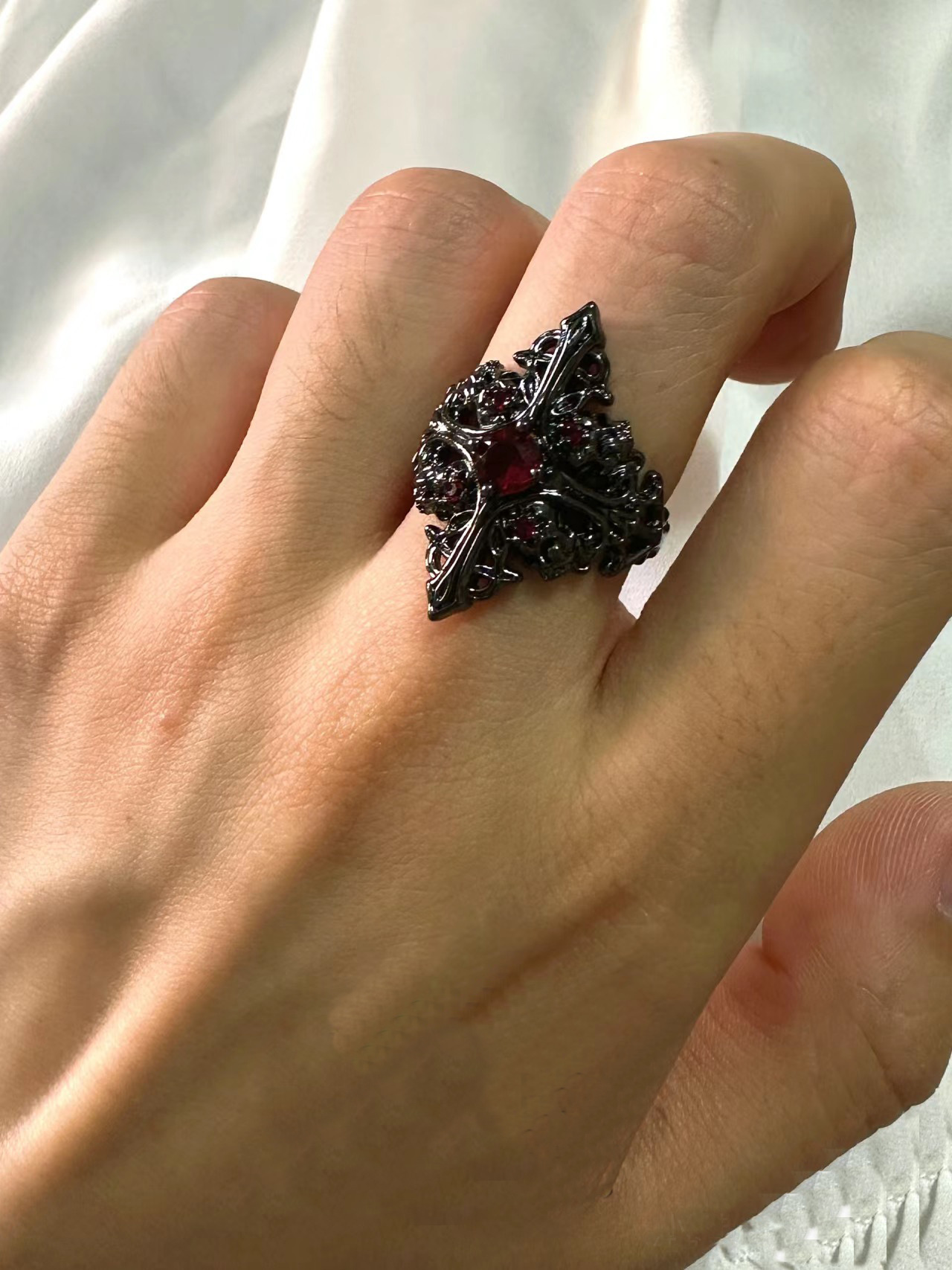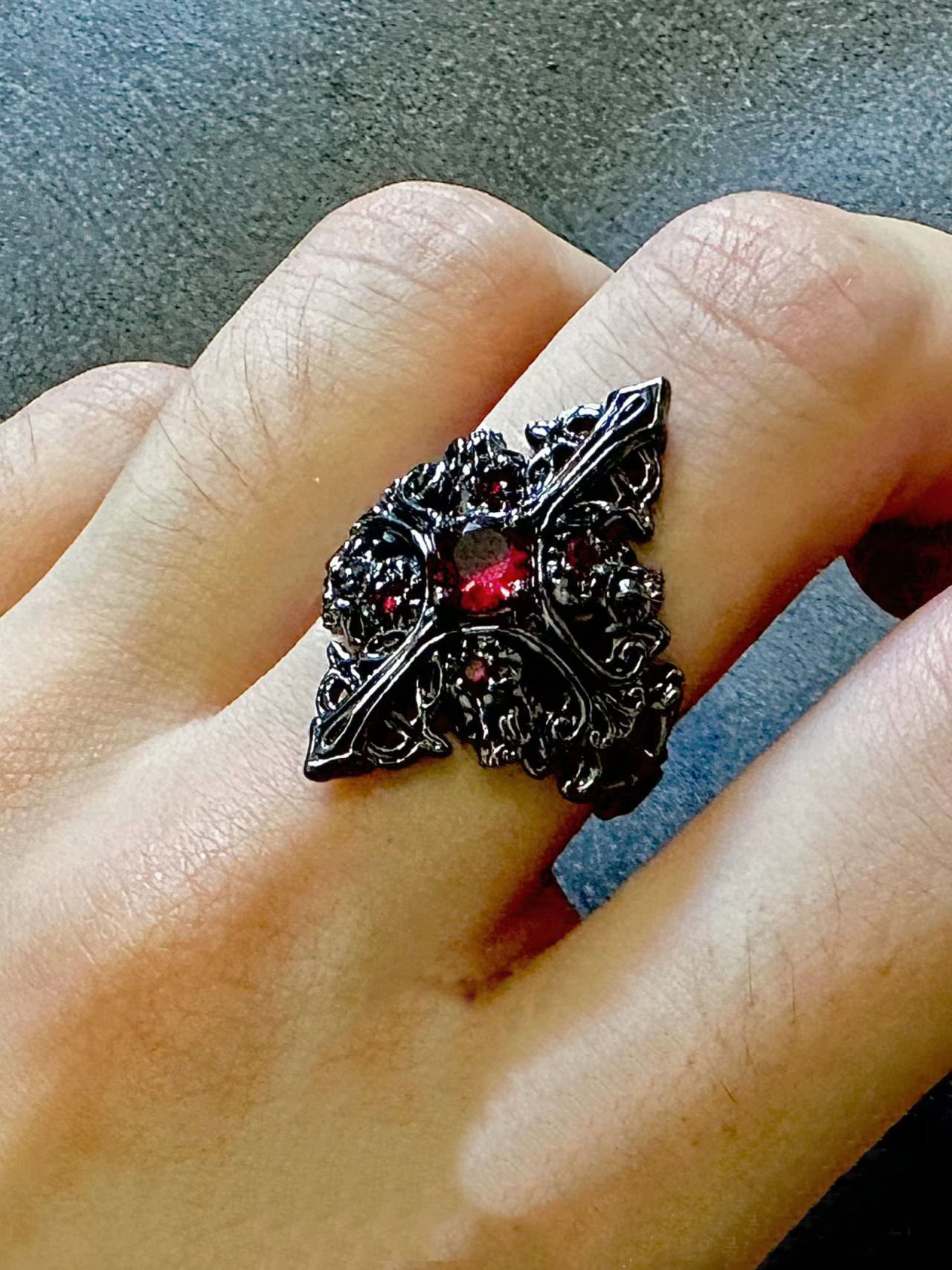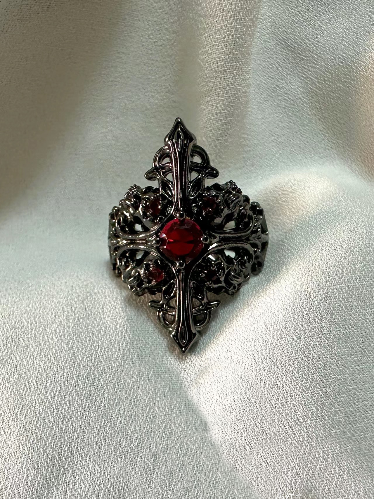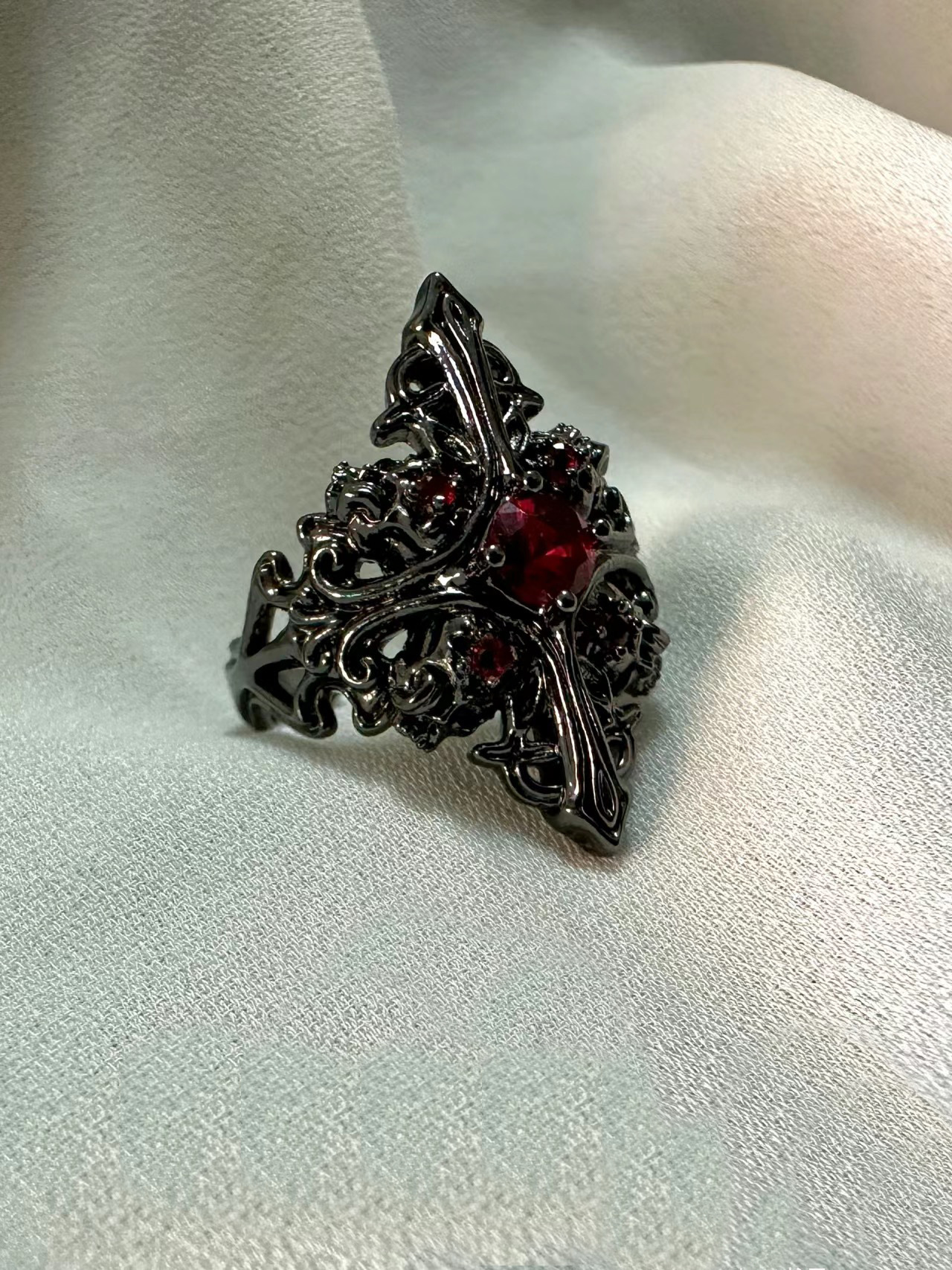 Cross-border European and American Gothic Style Cross Diamond Ruby Open Ring Personalized Design Dark Boys Ring