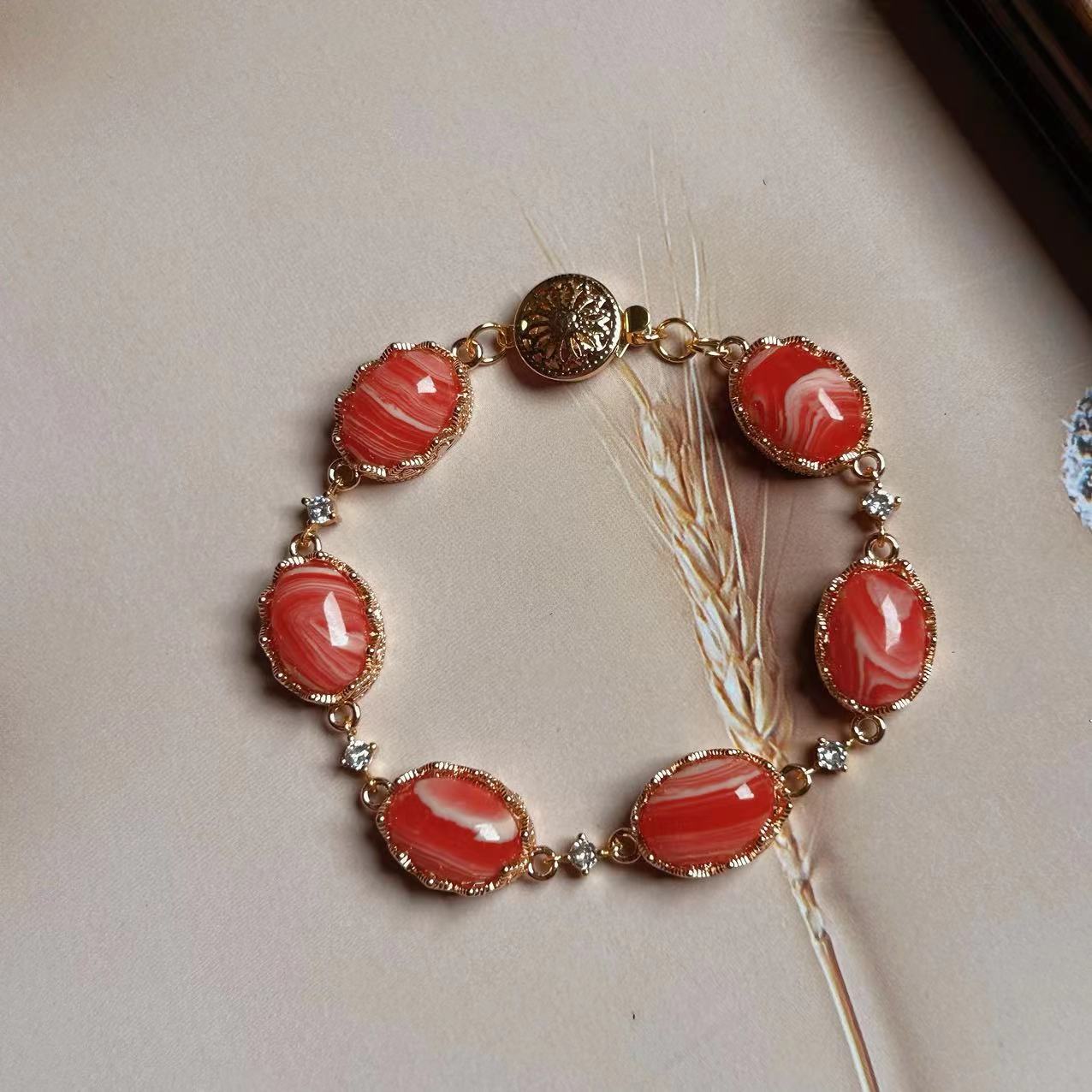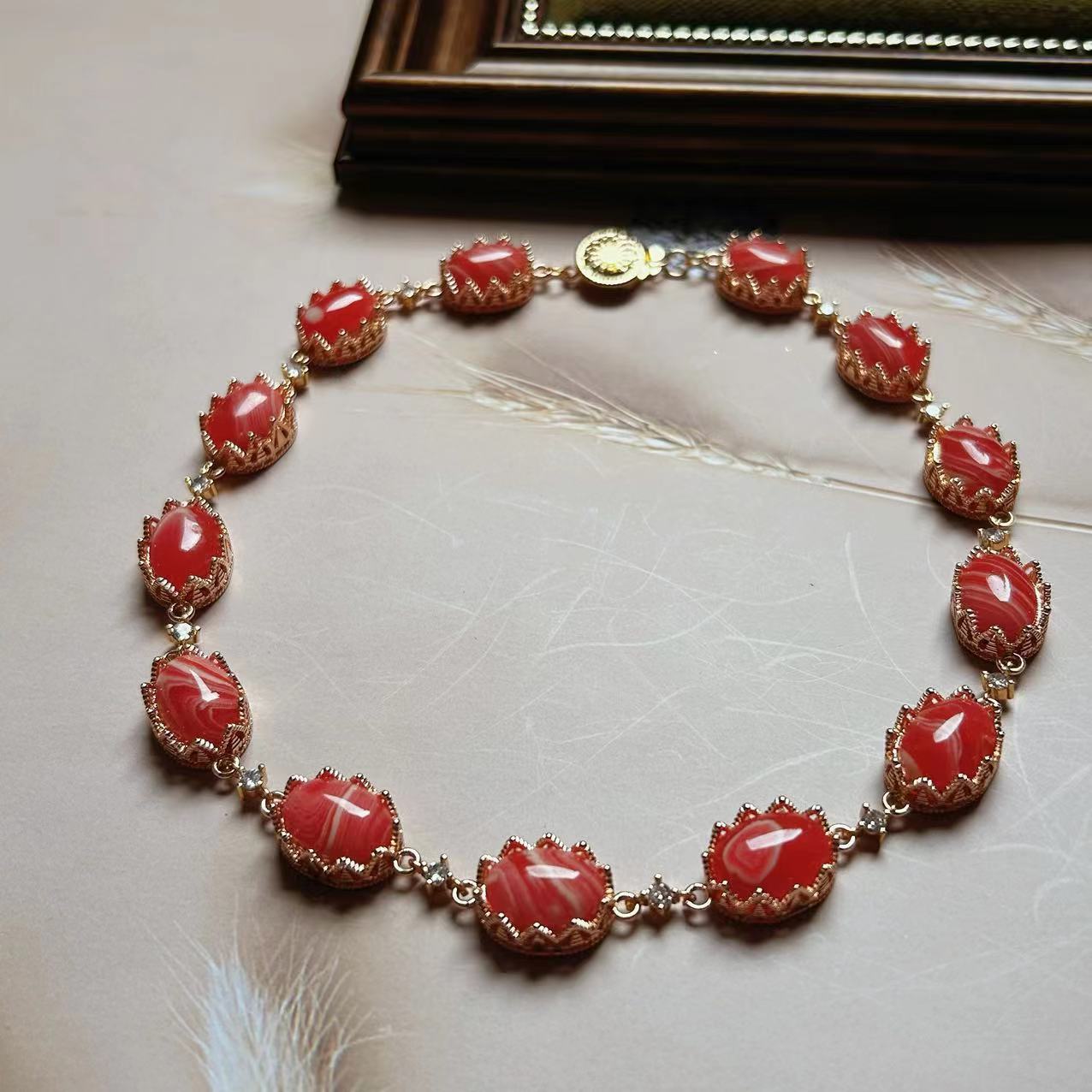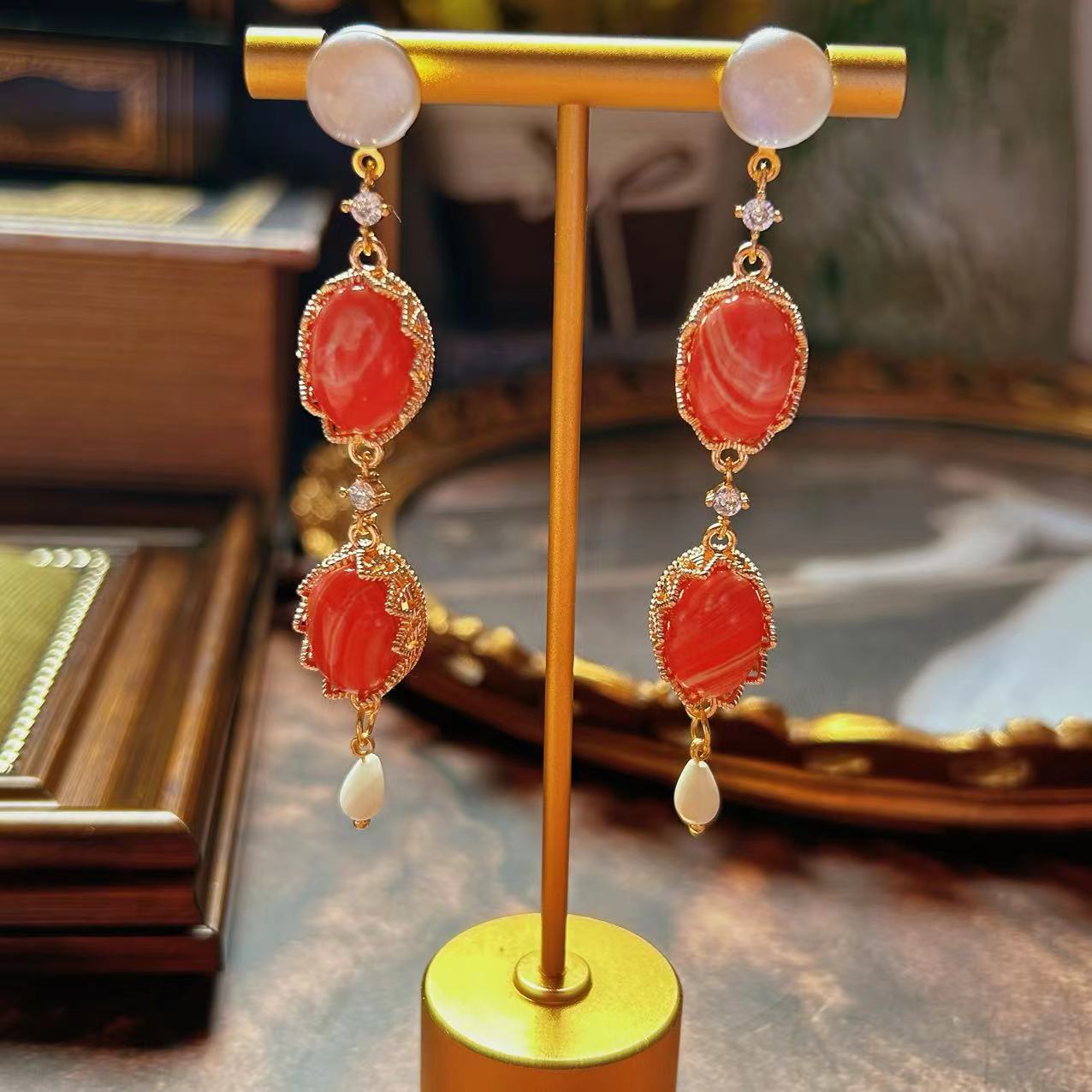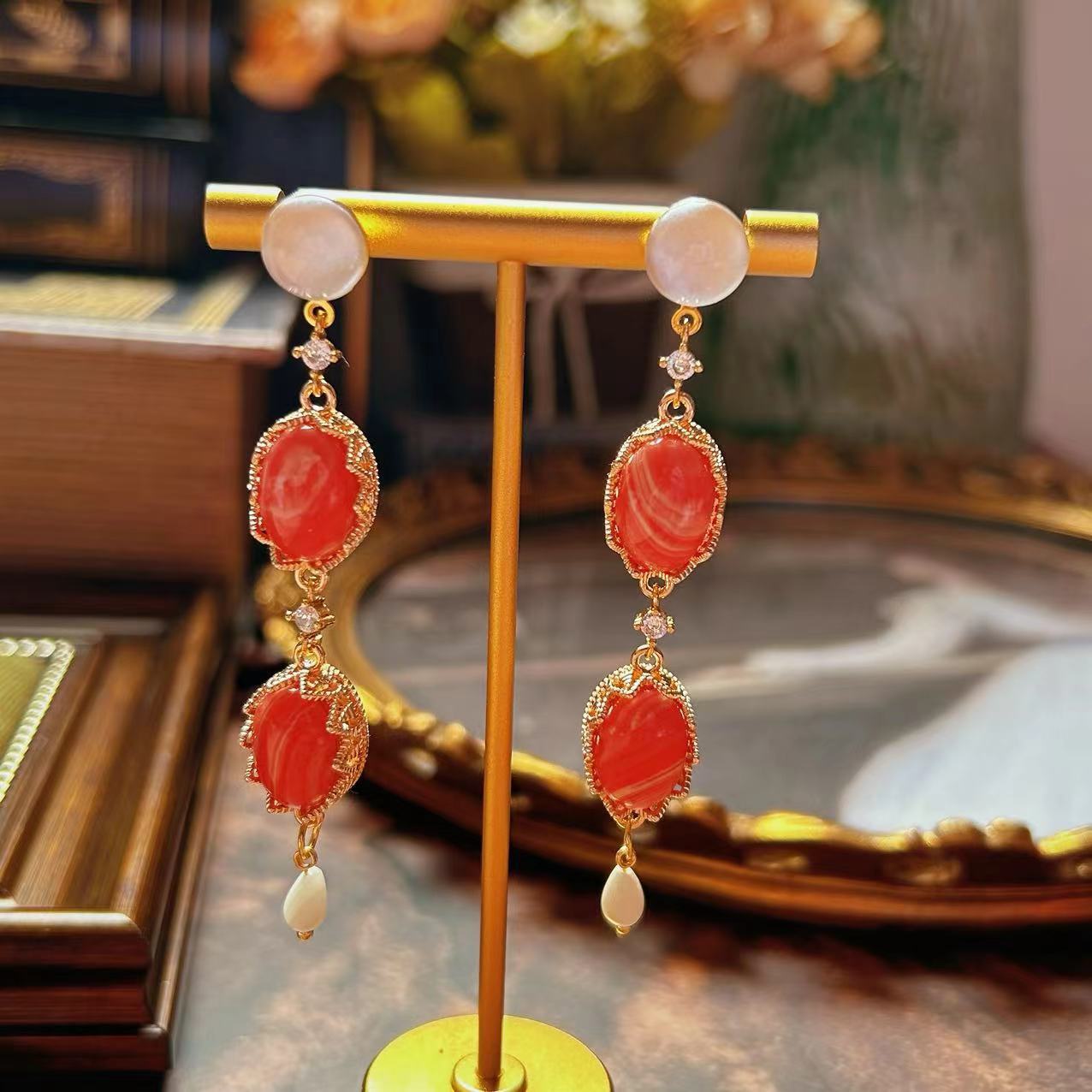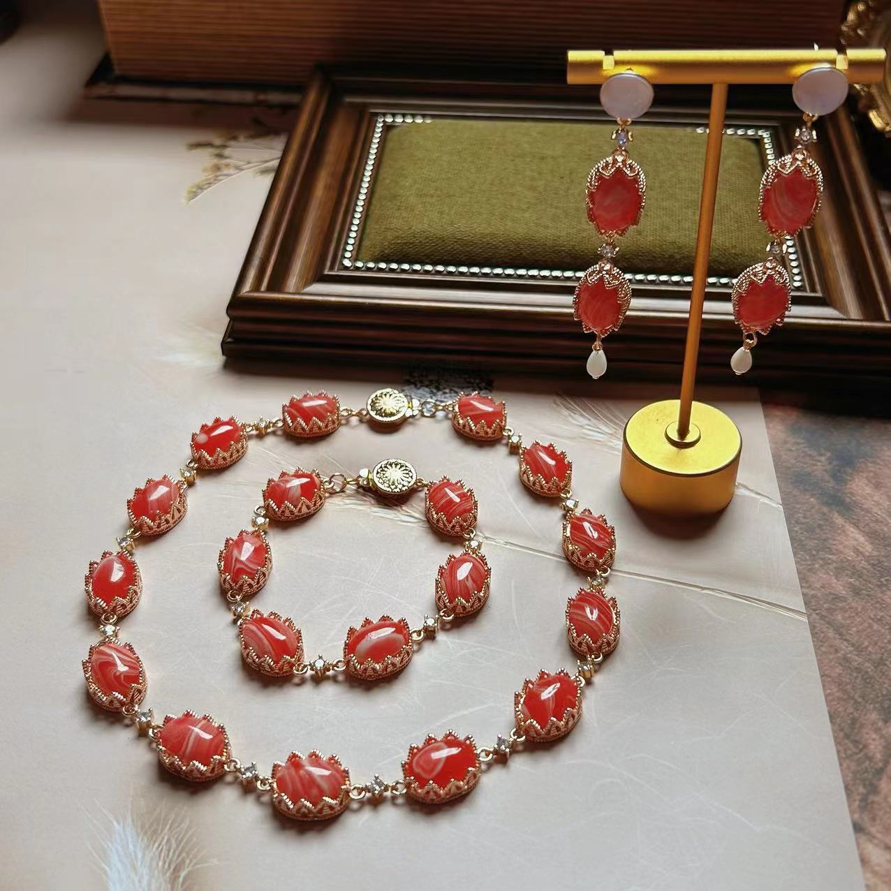 Middle Ancient vintage Jewelry Western Antique Red Stone Copper Plated Real Gold High-grade French Necklace Earrings Set