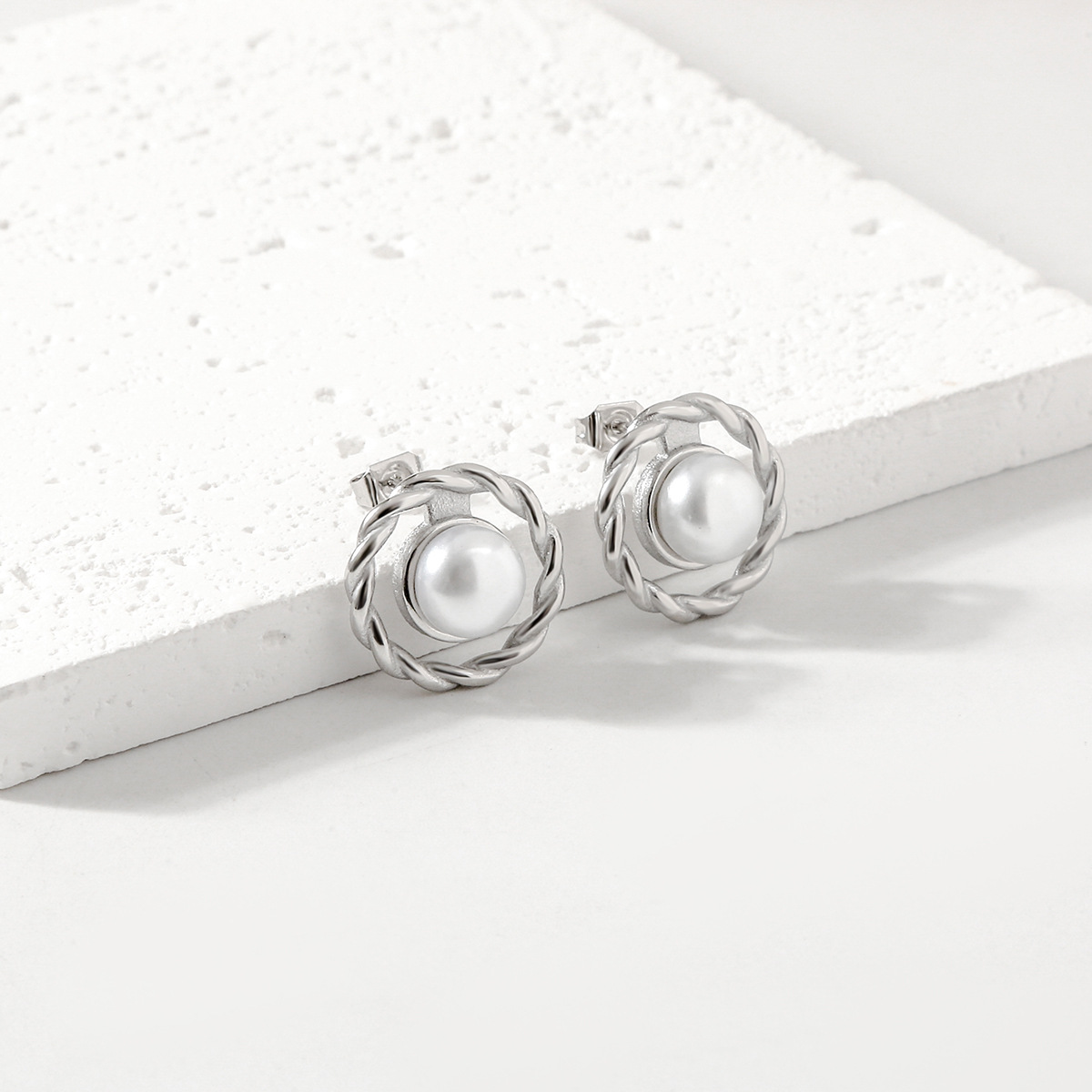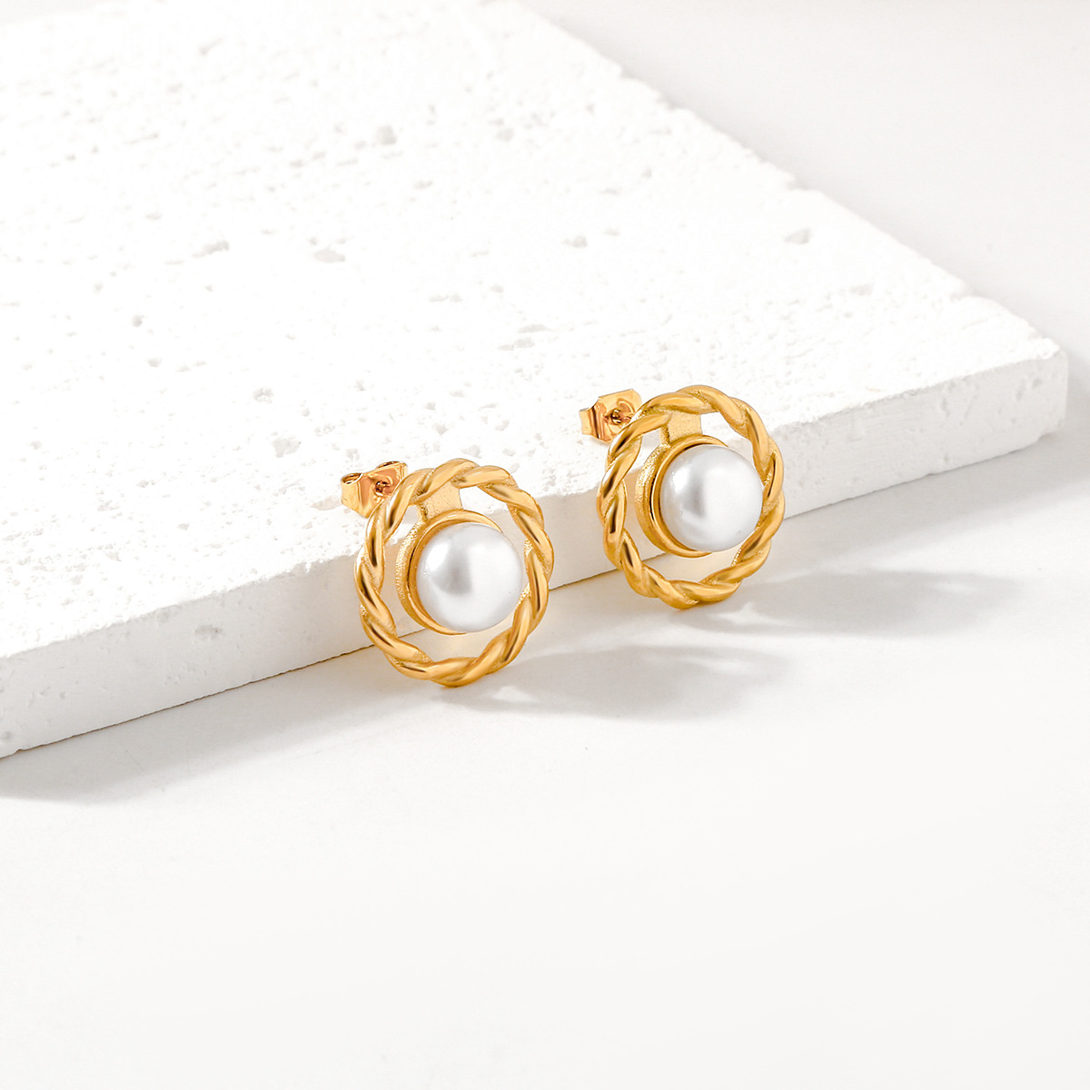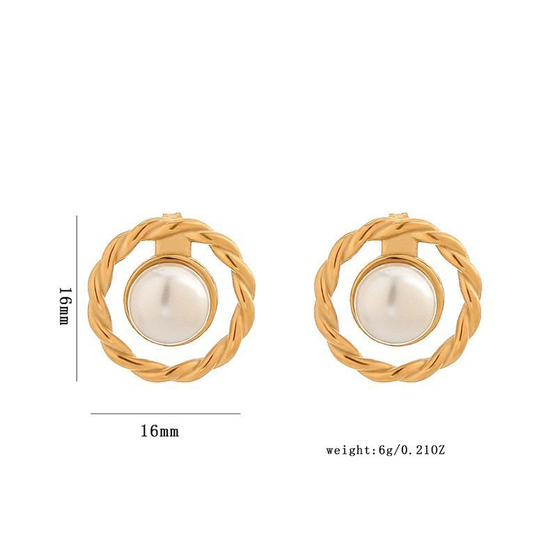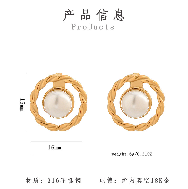 Cross-Border European and American High-End Twist Pearl Earrings for Women Stainless Steel Earrings Electroplating Accessories Jewelry Men Manufacturer Wholesale