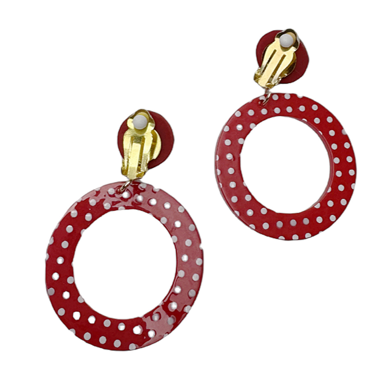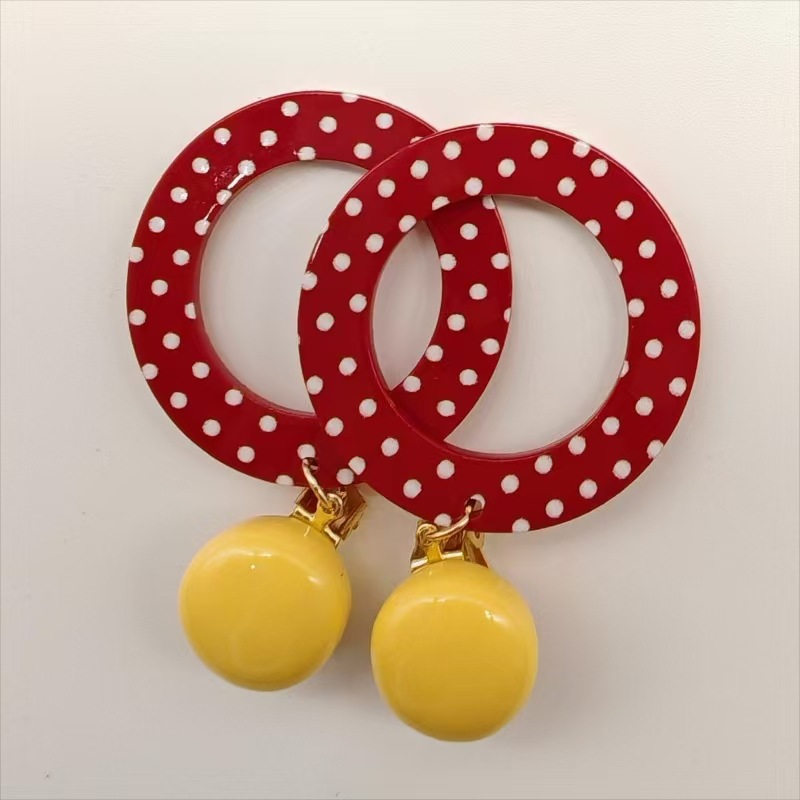 Europe and the United States cross-border personality retro Hong Kong style playful girl red exaggerated wave point large ring earrings ear clip wholesale