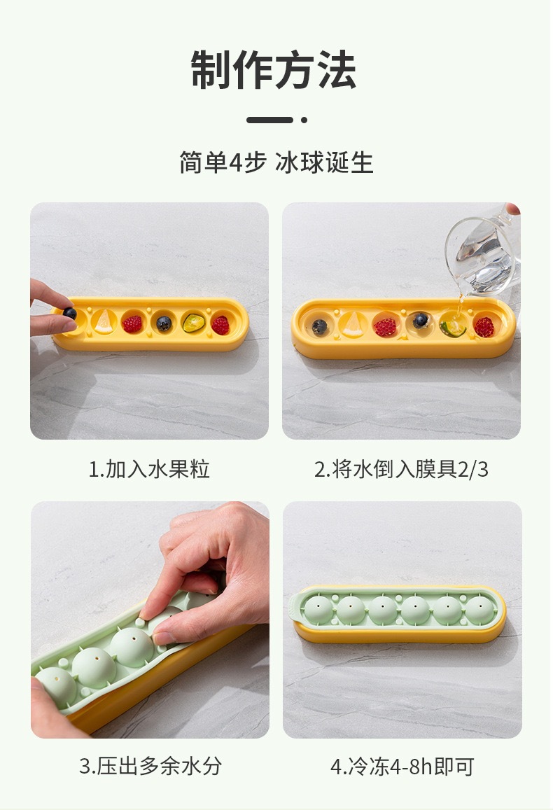 Food Grade Household Children's Supplementary Food Ice Mold Whiskey Ice Puck Mold with Cover Silicone Refrigerator Ice Artifact
