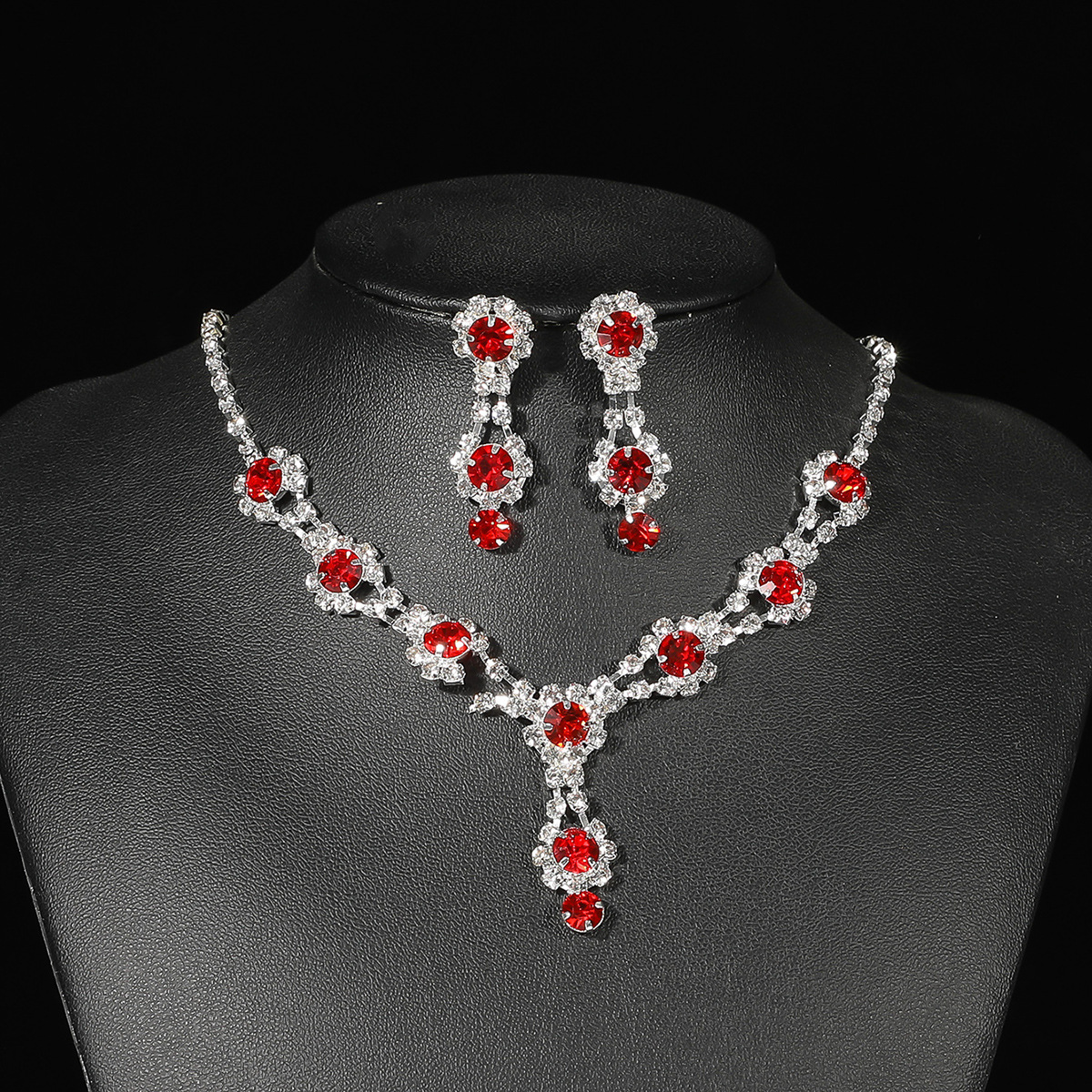color: T0022-Red crystal necklace set