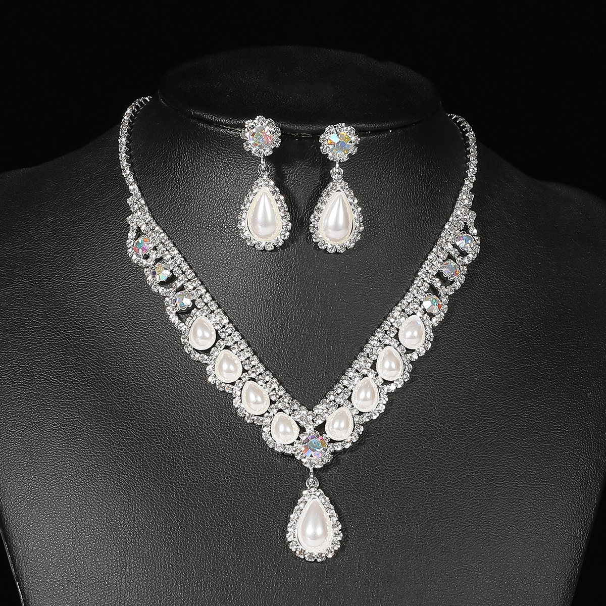 color: T0035-Silver water drop necklace set